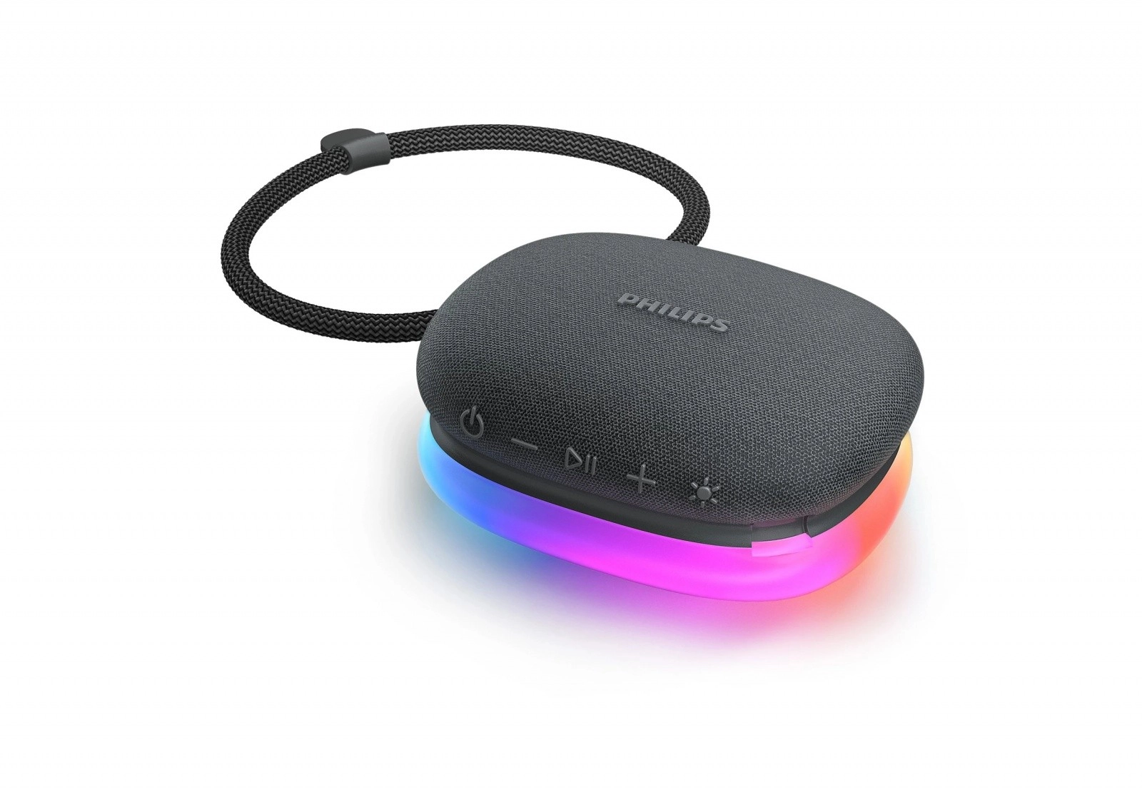 De stijlvolle en draagbare PHILIPS-luidspreker met textielafwerking en afgeronde lijnen blinkt uit met helder geluid en verrassend krachtige bas. De geïntegreerde meer-kleuren LED-verlichting zet de sfeer – van dynamische party-effecten tot rustgevend wit licht voor ’s avonds.