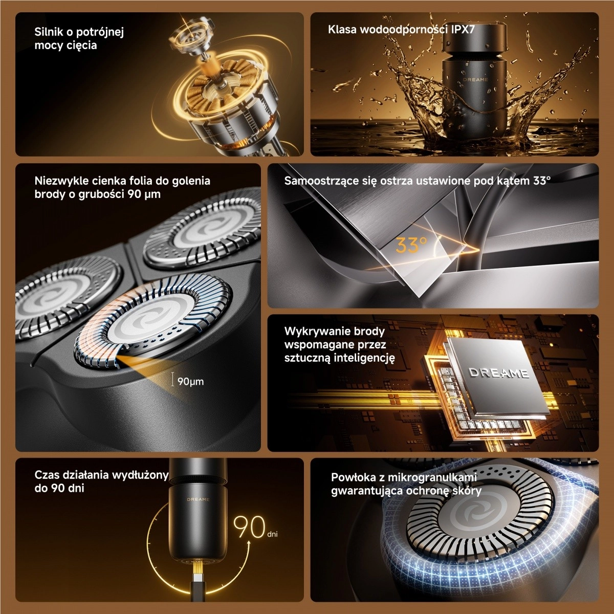 De Dreame S7 is ontworpen voor dagelijkse betrouwbaarheid en huidvriendelijkheid. De zwevende scheerkop past zich aan de contouren van gezicht en hals aan, zodat je gemakkelijk ook moeilijk bereikbare plekken scheert. De ultradunne folie van 90 μm en de onder 33° geslepen messen pakken zowel korte als langere baardharen voor een glad resultaat in één haal.