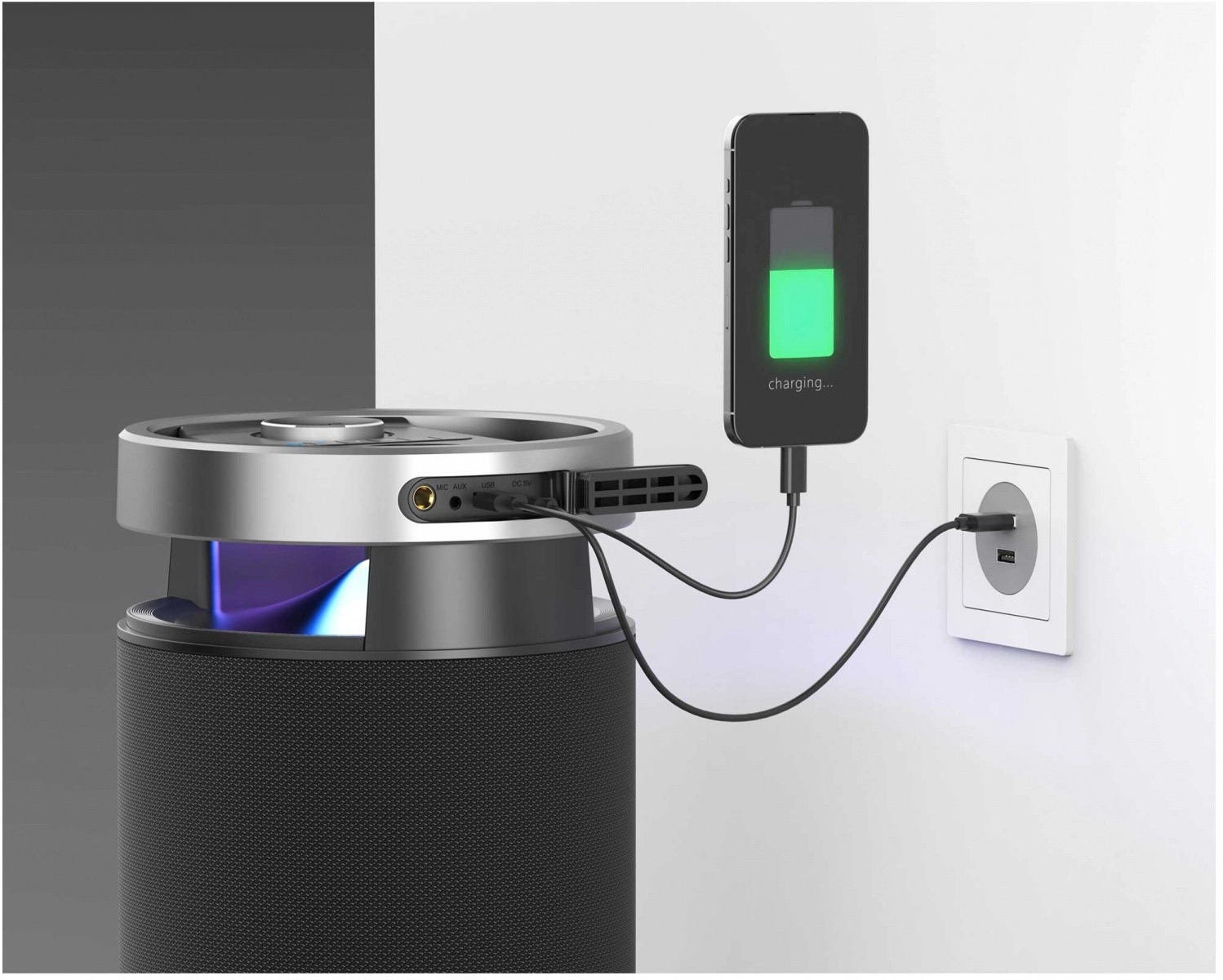 De draadloze verbinding is snel en stabiel en zorgt voor comfortabel streamen van muziek vanaf je telefoon of tablet. LED-verlichting met meerdere modi zorgt voor sfeer, en de bedieningsknoppen op het bovenpaneel maken het eenvoudig om volume, weergave en lichtmodi te regelen. De robuuste behuizing met stoffen grille en metalen ring oogt elegant en duurzaam.