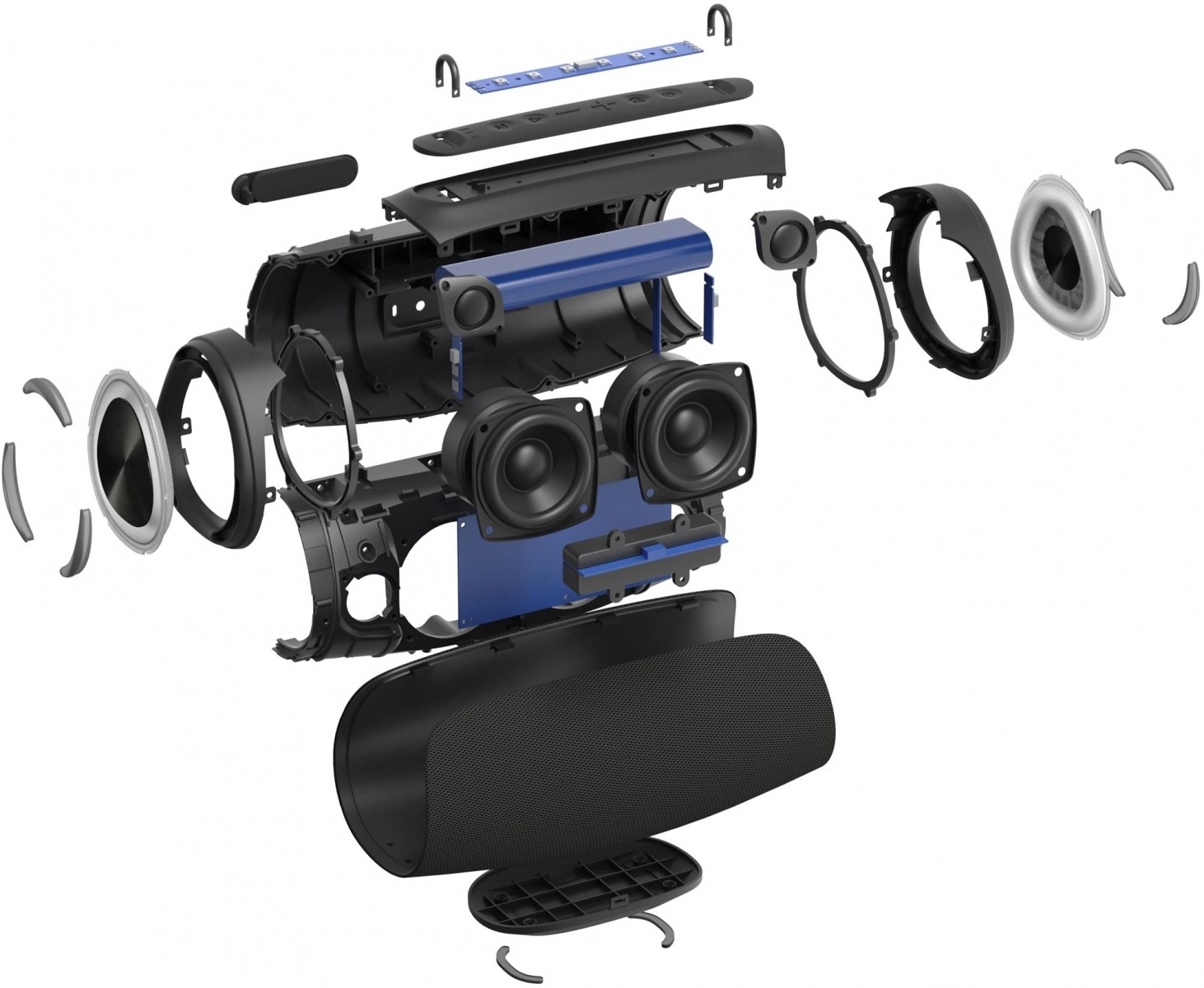 Met de IPX7-bescherming deinst hij niet terug voor regen of opspattend water aan de kust. De Broadcast/TWS-functie laat je meerdere luidsprekers van hetzelfde model koppelen voor een bredere soundstage bij feestjes en events.