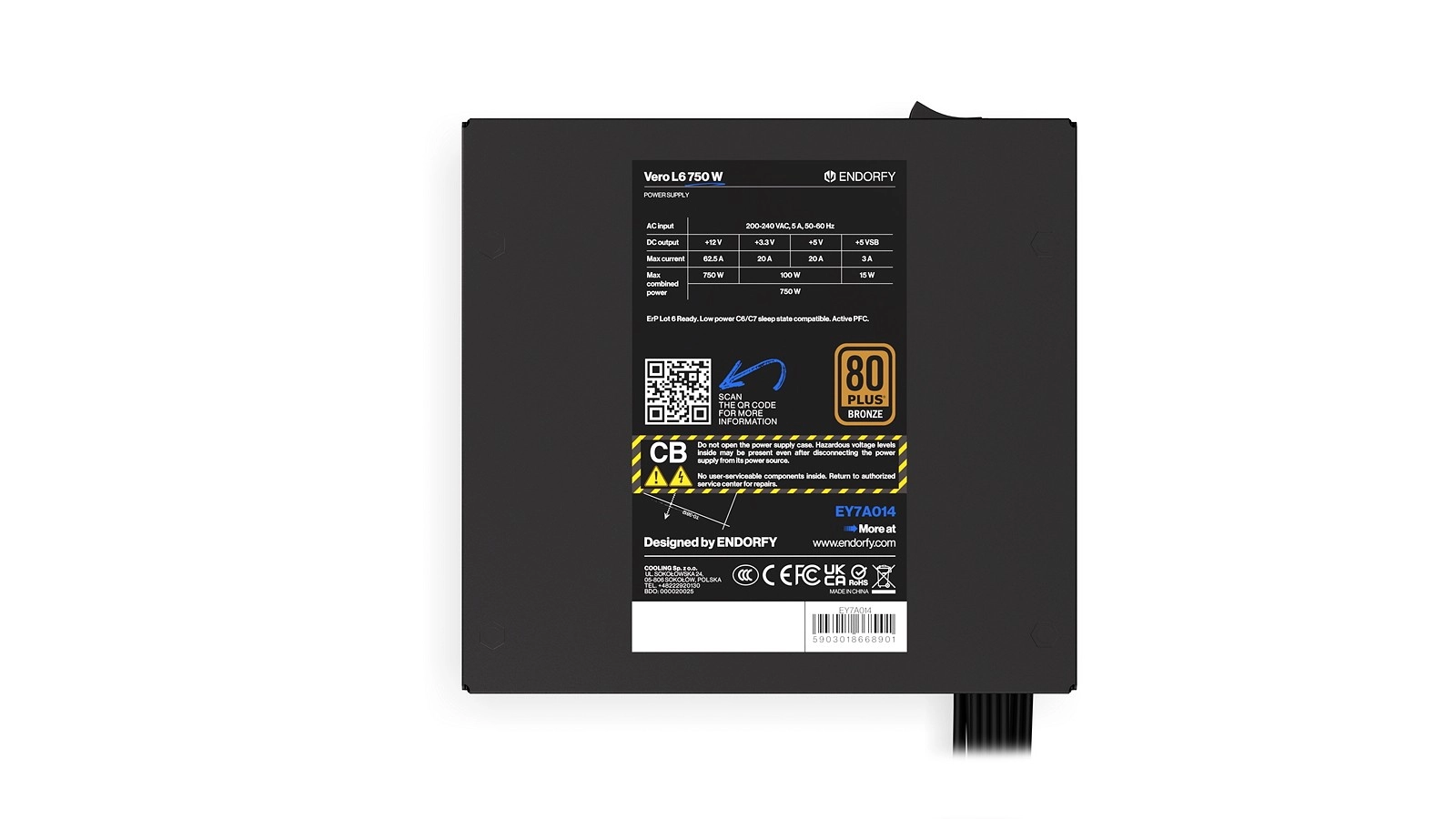ENDORFY Vero L6 750 W is een moderne voeding, ontworpen voor stabiele stroomvoorziening van actuele pc’s. Voldoet aan de strenge eisen van ATX 3.1, kan piekbelastingen aan en voedt zonder compromissen de nieuwste grafische kaarten via 12V-2x6 (600 W) en klassieke PCI-E 6+2 pin. De certificeringen Cybenetics Silver en 80 PLUS Bronze bevestigen hoge efficiëntie en lagere verliezen.