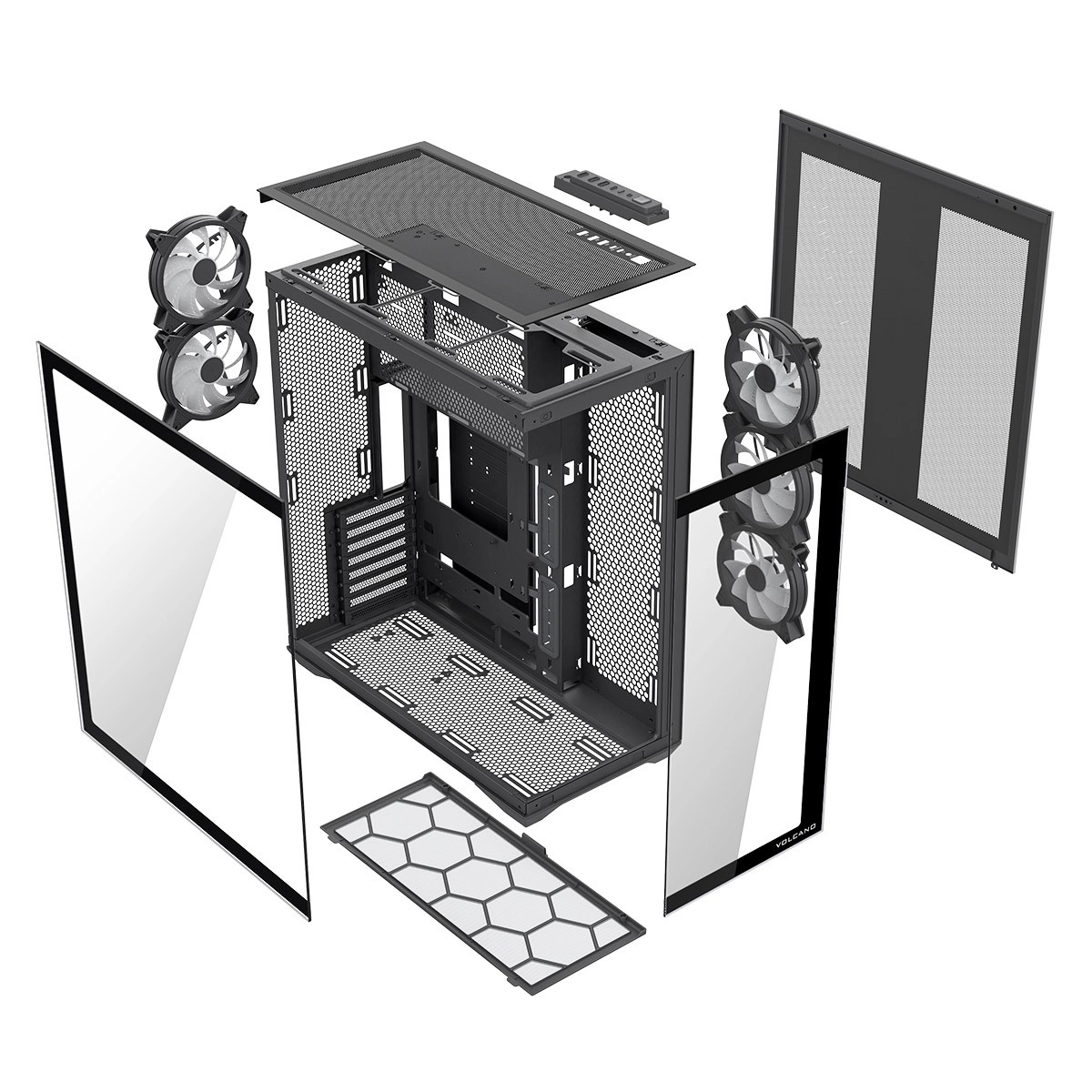 De MODECOM Volcano Space XL is een royale full tower, ontworpen voor veeleisende gamers en creators. De voor- en zijpanelen van gehard glas zorgen voor een aantrekkelijk vitrineeffect, waardoor je componenten en ARGB-verlichting vanuit elke hoek opvallen. Dankzij de snelkoppeling-sluitingen krijg je eenvoudig toegang – montage, upgrades en reinigen zijn zo gepiept.