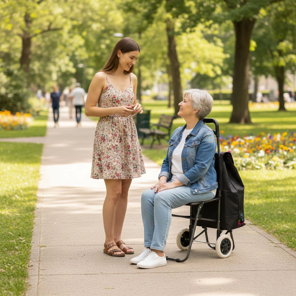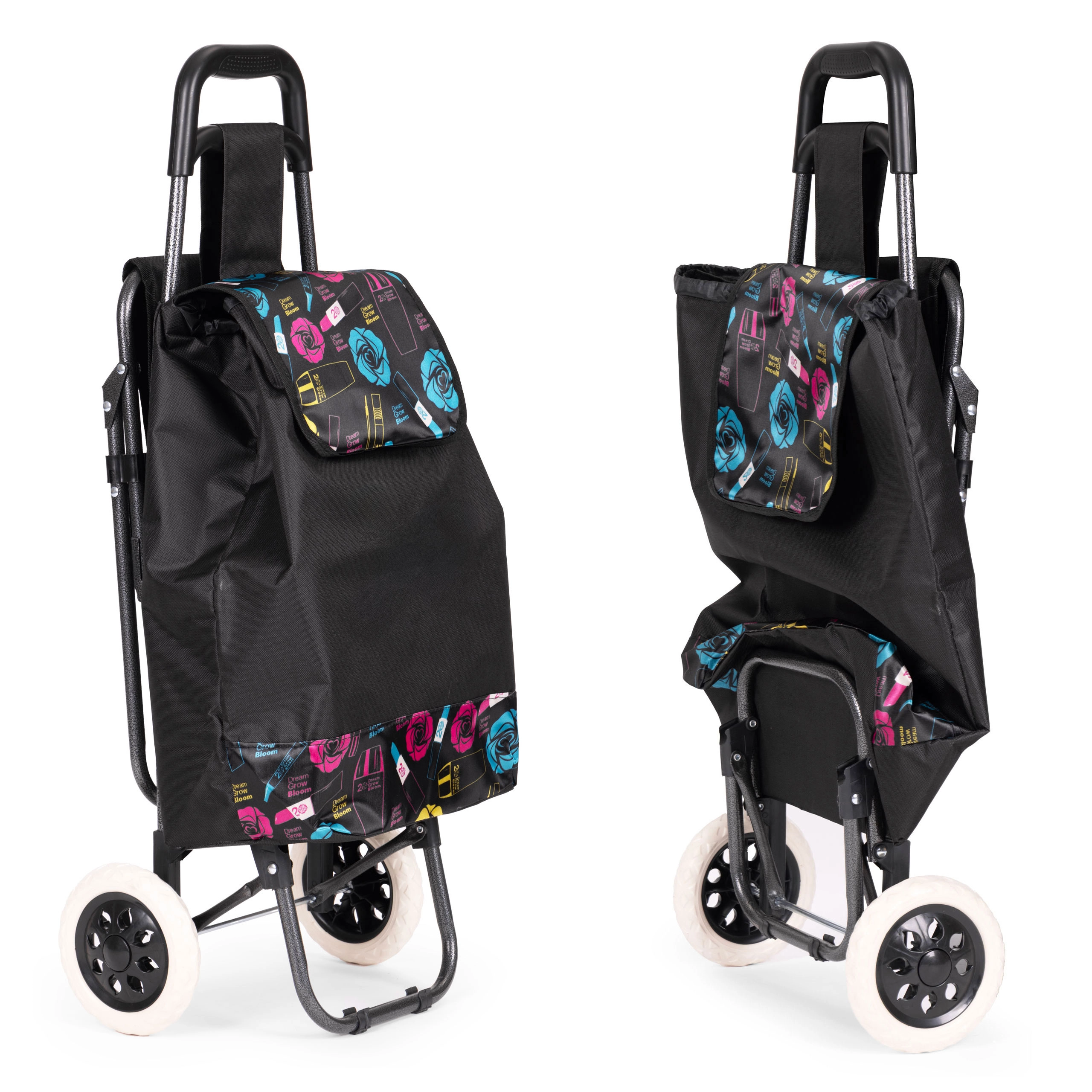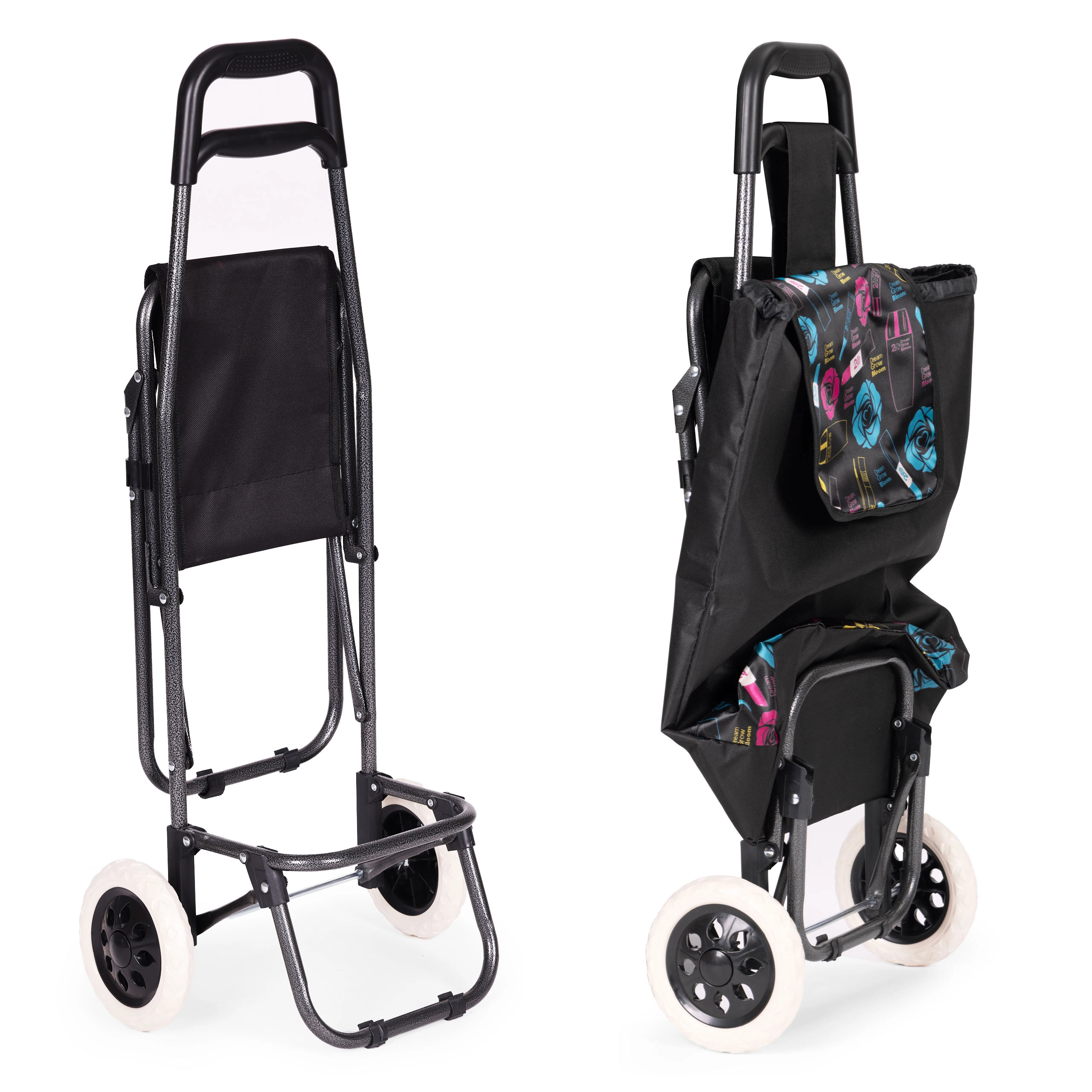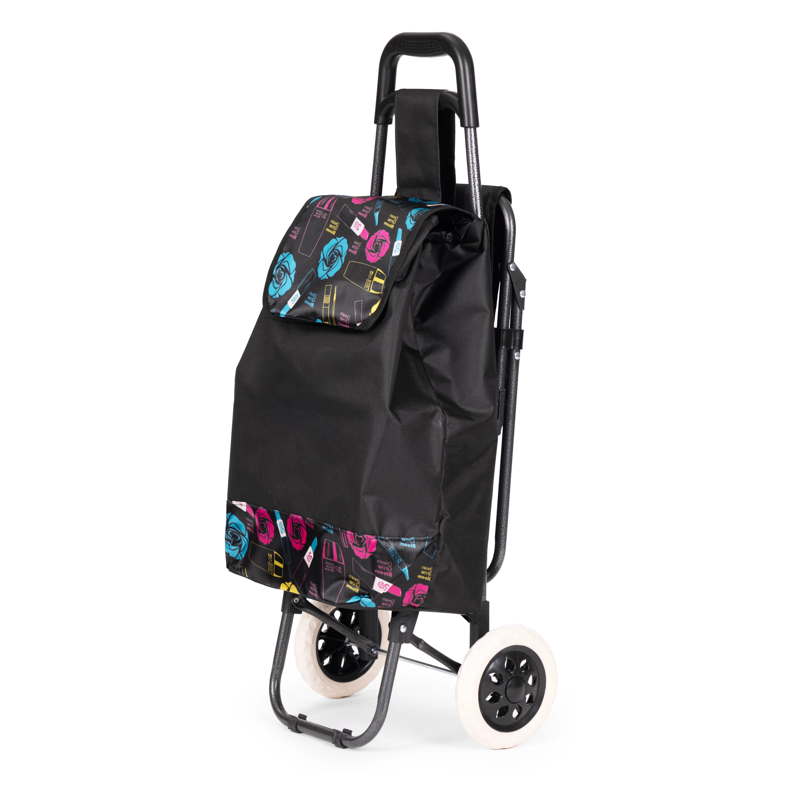 De geïntegreerde opklapbare zitting laat u op elk moment uitrusten – ideaal tijdens het wachten, op de markt of tijdens een wandeling. Het praktische achtervak met rits houdt portemonnee, sleutels of telefoon veilig en binnen handbereik. De versterkte bodem en het draagvermogen van 20 kg zorgen voor stabiliteit, ook bij volle belading.