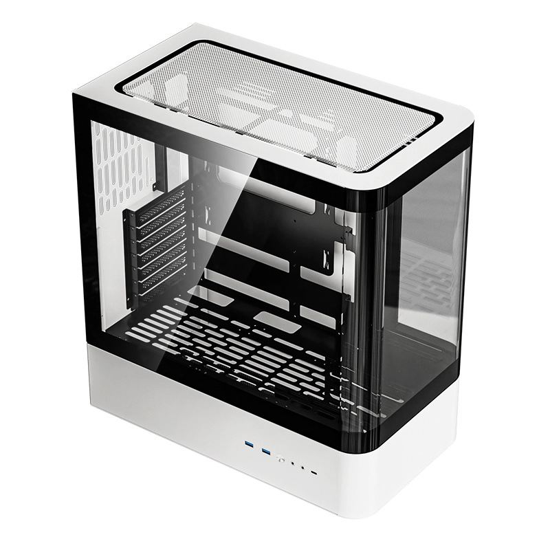 De stijlvolle computerbehuizing Darkflash HM1 biedt een ruime indeling voor ATX/M-ATX/ITX, topkoeling met tot 7× 120mm ventilatoren en ondersteuning voor 360 mm waterkoeling. Het gebogen geharde glas met anti‑reflecterende afwerking, USB‑C en USB 3.0 op het frontpaneel en doordacht cable management zorgen voor een schone build en uitstekende airflow.