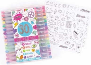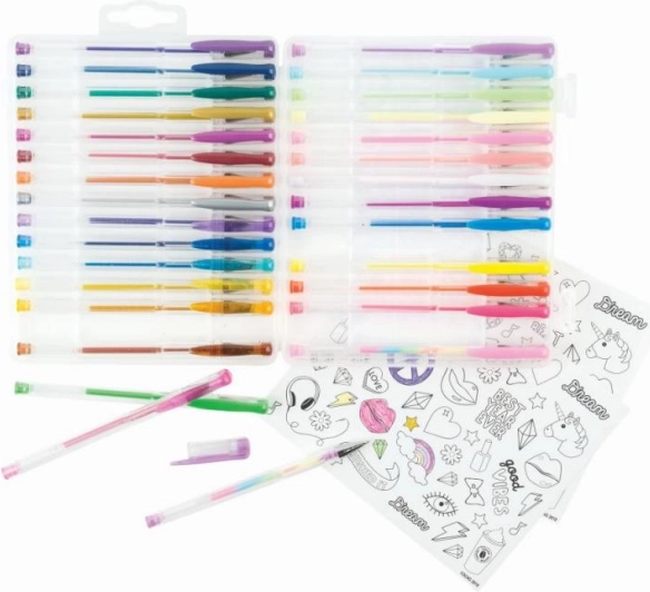 Ontdek het plezier met onze set van 30 gelpennen MAKE IT REAL, perfect voor tekenen, schrijven en schone kunsten in dagboeken of notitieblokken. Deze set bevat:
