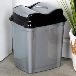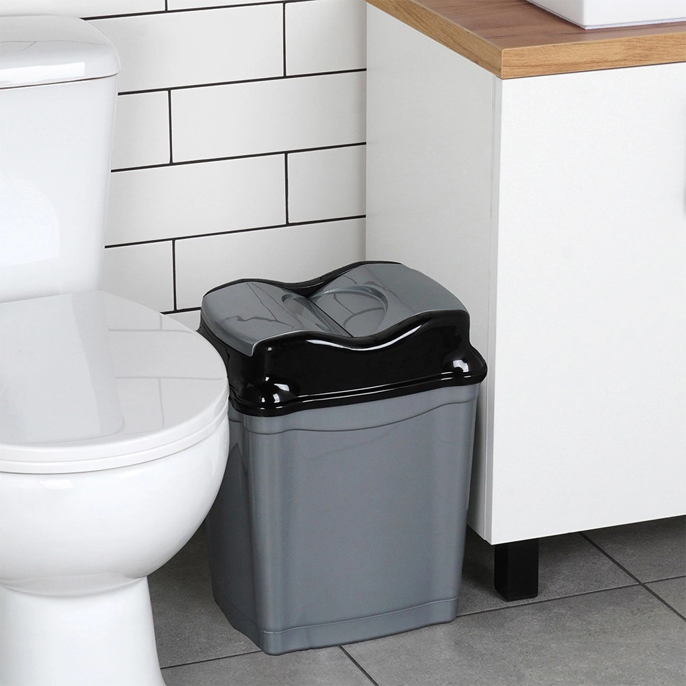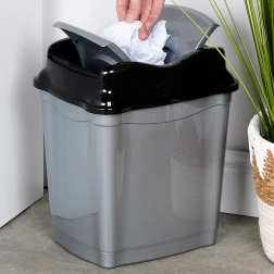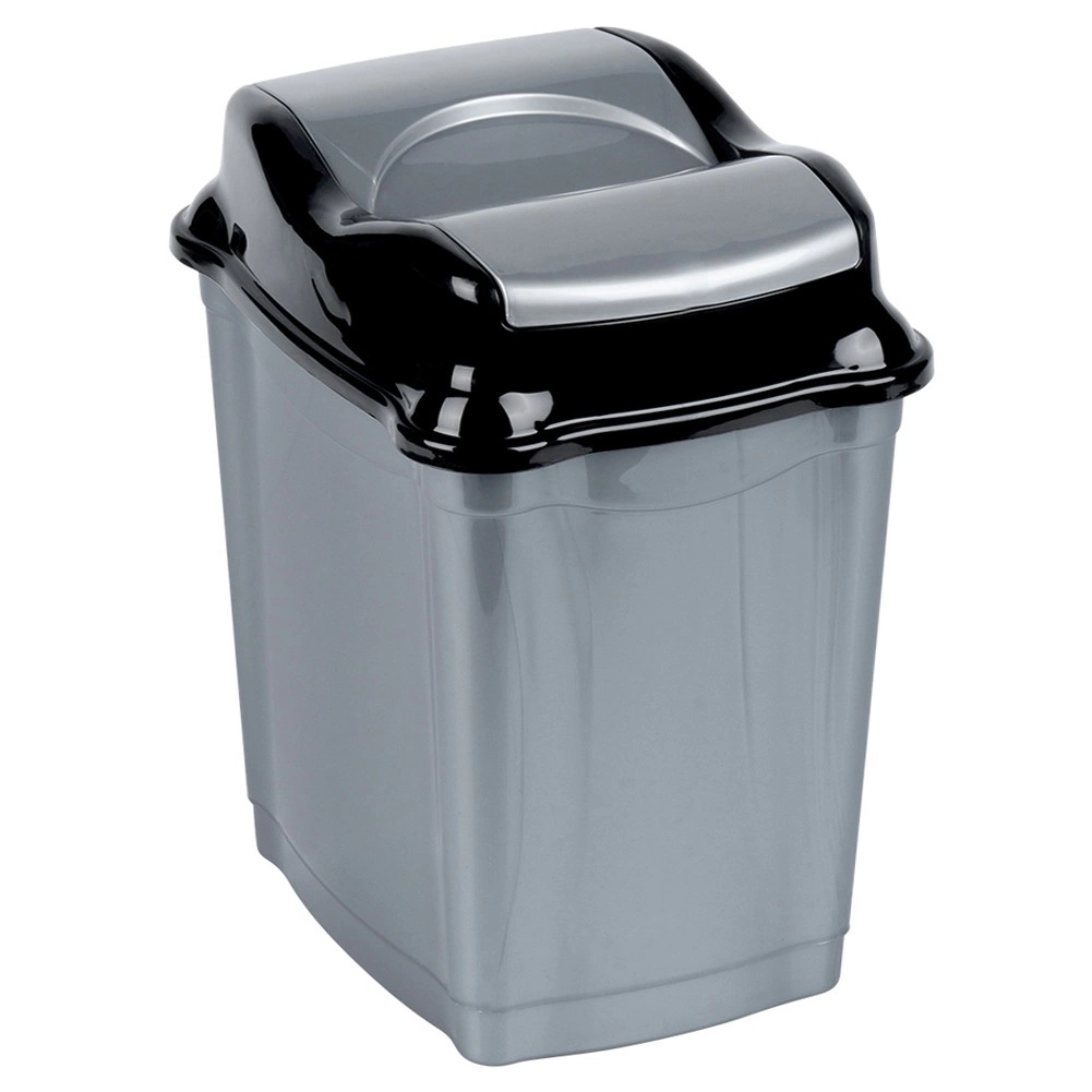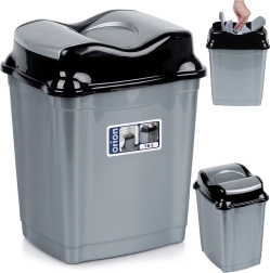 Praktische afvalbak van 16 liter in grijs met een glanzend zwart kiepdeksel, ideaal voor keuken, badkamer, thuiskantoor en wachtruimtes. Het duurzame kunststof garandeert een lange levensduur en laag gewicht, waardoor de bak gemakkelijk te hanteren is en eenvoudig schoon te houden.