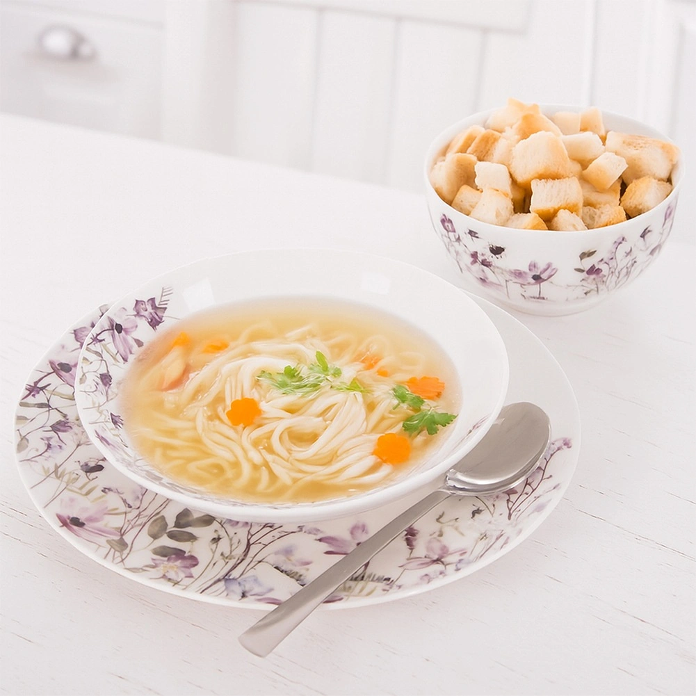 Dankzij de geschikte diepte en een inhoud van 600 ml serveer je comfortabel soepen, crèmes, pasta of muesli. Hoogwaardig porselein is duurzaam en onderhoudsvriendelijk – het bord is vaatwasser- en magnetronbestendig. De klassieke ronde vorm en het bloemenmotief zijn eenvoudig te combineren met de rest van je servies.