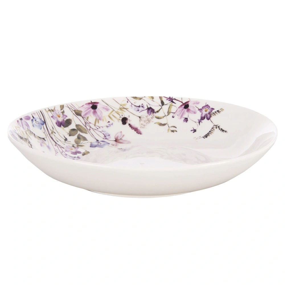Elegant diep porseleinen bord met een decoratief veldbloemenpatroon, ideaal voor dagelijks gebruik en feestelijke gelegenheden. Met een diameter van 20,5 cm en een inhoud van 600 ml is het perfect voor soepen, pasta en salades. Porselein garandeert een lange levensduur; het bord is geschikt voor vaatwasser en magnetron en siert elke tafel met zijn elegante design.