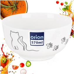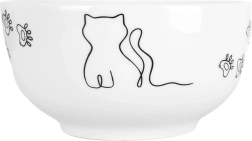 Stijlvolle porseleinen kom met kattenmotief, inhoud 550 ml en diameter 13 cm, ideaal voor ontbijtgranen, soepen en tussendoortjes. Heeft een gladde glazuur, duurzame porseleinkwaliteit, is geschikt voor vaatwasser en magnetron en siert elke tafel dankzij het minimalistische kattenontwerp.
