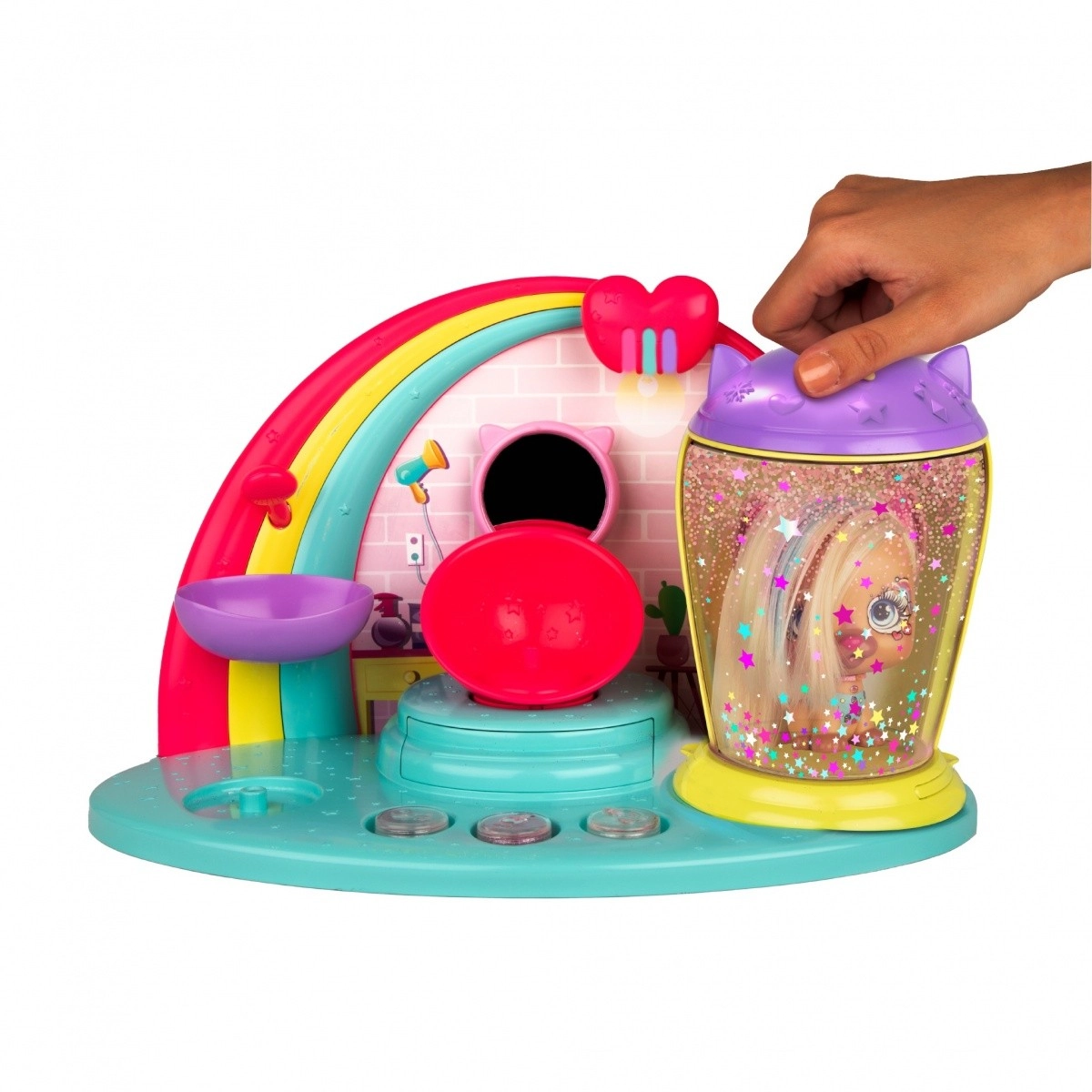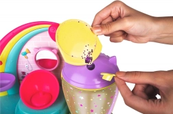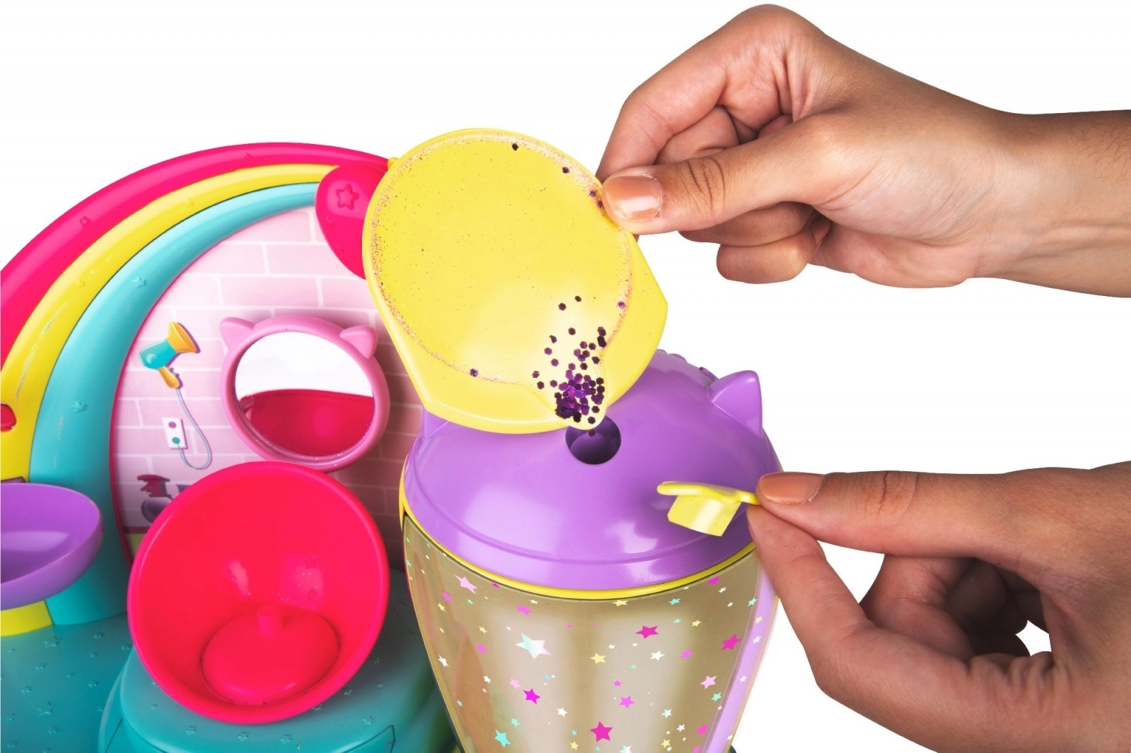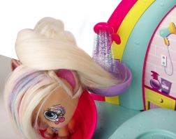 Maak Kiara’s haar vochtig met het pompje en gebruik de regenboogkam voor gekleurde lokken – eenvoudig, schoon en leuk.