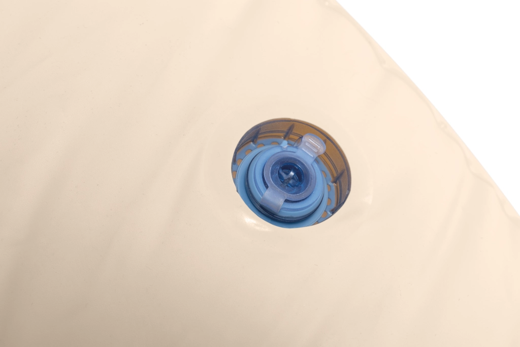Dankzij het gladde, aangenaam aanvoelende oppervlak en de robuuste ventielen maak je hem snel gebruiksklaar en berg je hem na het leeglaten compact op. Het minimalistische design in een beige tint past in moderne interieurs en is ook geschikt voor terras, balkon of tuin.