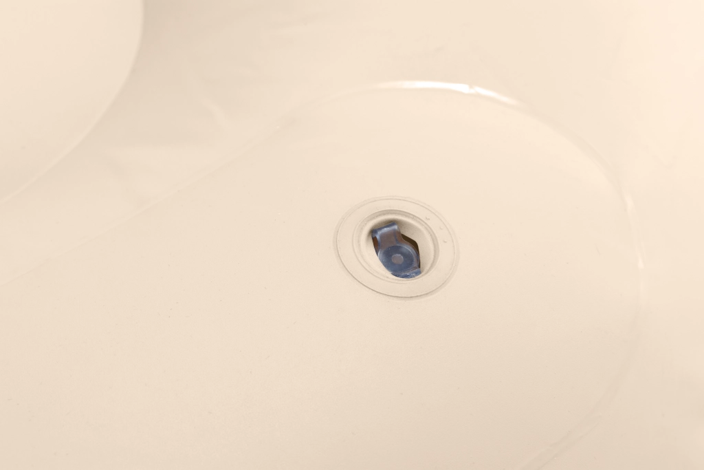 Dubbele, stevige ventielen met veilige afsluitingen maken eenvoudige handling mogelijk. Na het leeglaten vouw je de fauteuil op tot een klein pakketje.
