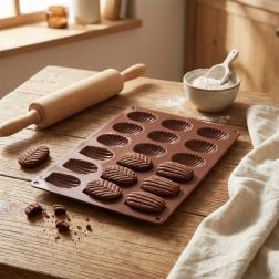 Met deze siliconen vorm tover je in een handomdraai elegante pralines, kleine koekjes en mini cakejes in de vorm van schelpjes en bladeren. Het materiaal is van nature antiaanbak, waardoor het deeg gemakkelijk loskomt en invetten of bebloemen niet nodig is. De vorm is licht en flexibel, en geleidt de warmte goed voor gelijkmatig bakken.
