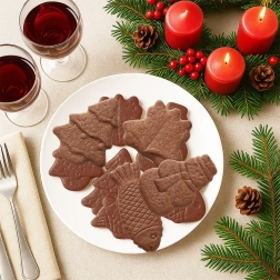 De vorm biedt kerstboompjes in twee maten, een sneeuwpop, bellen en een vis – ideaal voor koekjes en chocolaatjes met een feestelijke uitstraling.