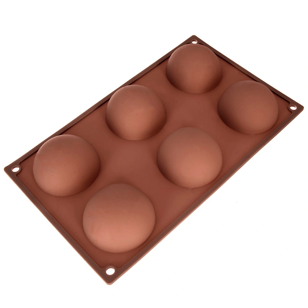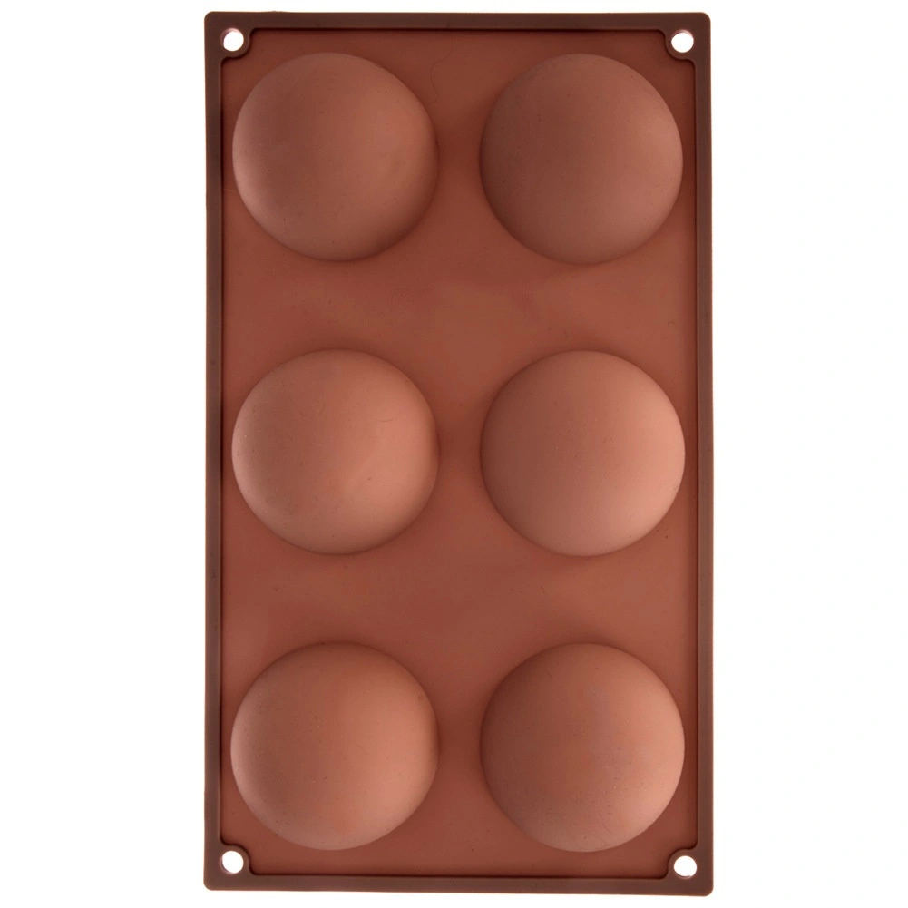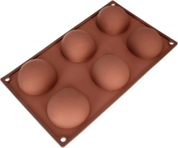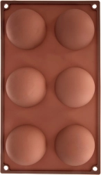 Deze bruine siliconen vorm met zes halvebolholtes is ideaal voor het bereiden van koude desserts en gebakken bodems. Dankzij het antiaanbakoppervlak los je desserts eenvoudig zonder de vorm te beschadigen en de vorm neemt geen geuren of smaken op.