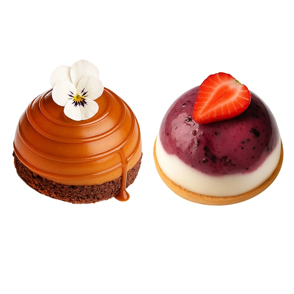 Praktische siliconen vorm met zes holtes in de vorm van halve bollen waarmee je elegante desserts, pralines, semifreddo, ijs en minitaartjes met een perfect glad oppervlak kunt maken. Hij is flexibel, antiaanbak en gemakkelijk te lossen. Bestand tegen temperaturen van −40 °C tot +200 °C, dus geschikt voor oven, magnetron en vriezer, en na gebruik eenvoudig in de vaatwasser te reinigen.