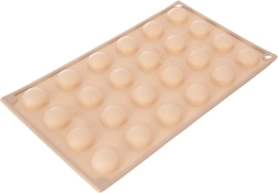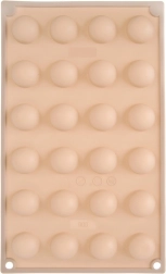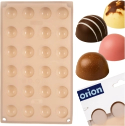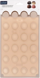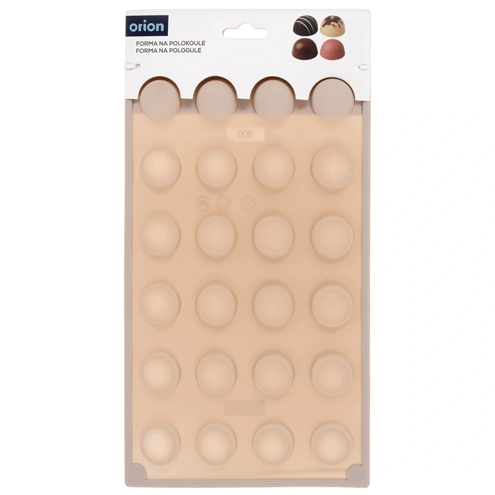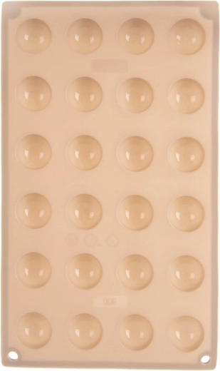 Deze beige siliconen mal maakt het eenvoudig en snel om professioneel ogende pralines, chocolaatjes en mini gebakjes in halve-bolvorm te maken. Dankzij het antiaanbakoppervlak los je de stukjes gemakkelijk zonder vastplakken en de mal neemt geen geuren of smaken op.