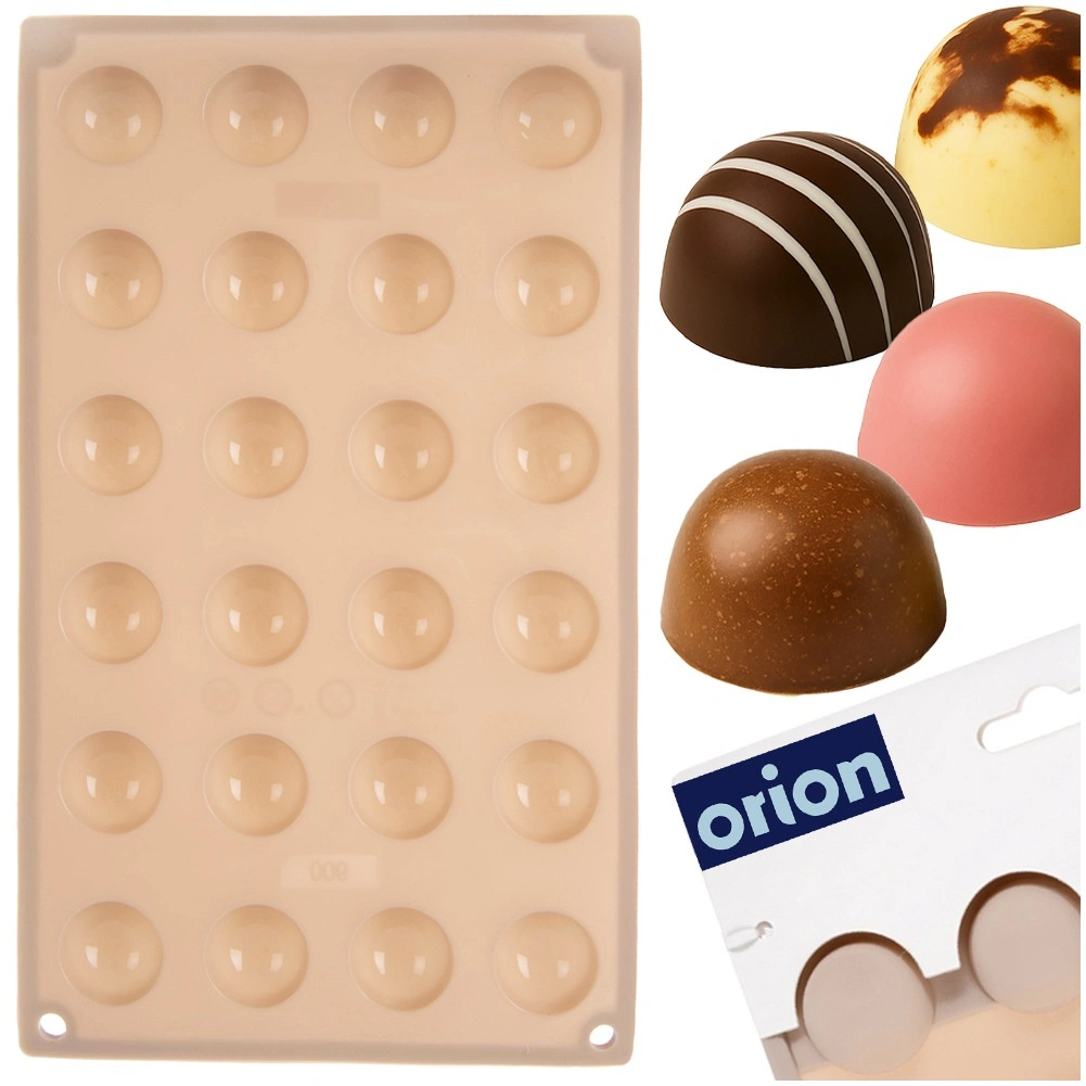 Het raster met 24 holtes in halve-bolvorm zorgt voor een uniforme vorm en grootte van elk stukje – ideaal voor elegante pralines en moderne desserts.