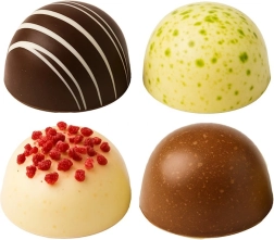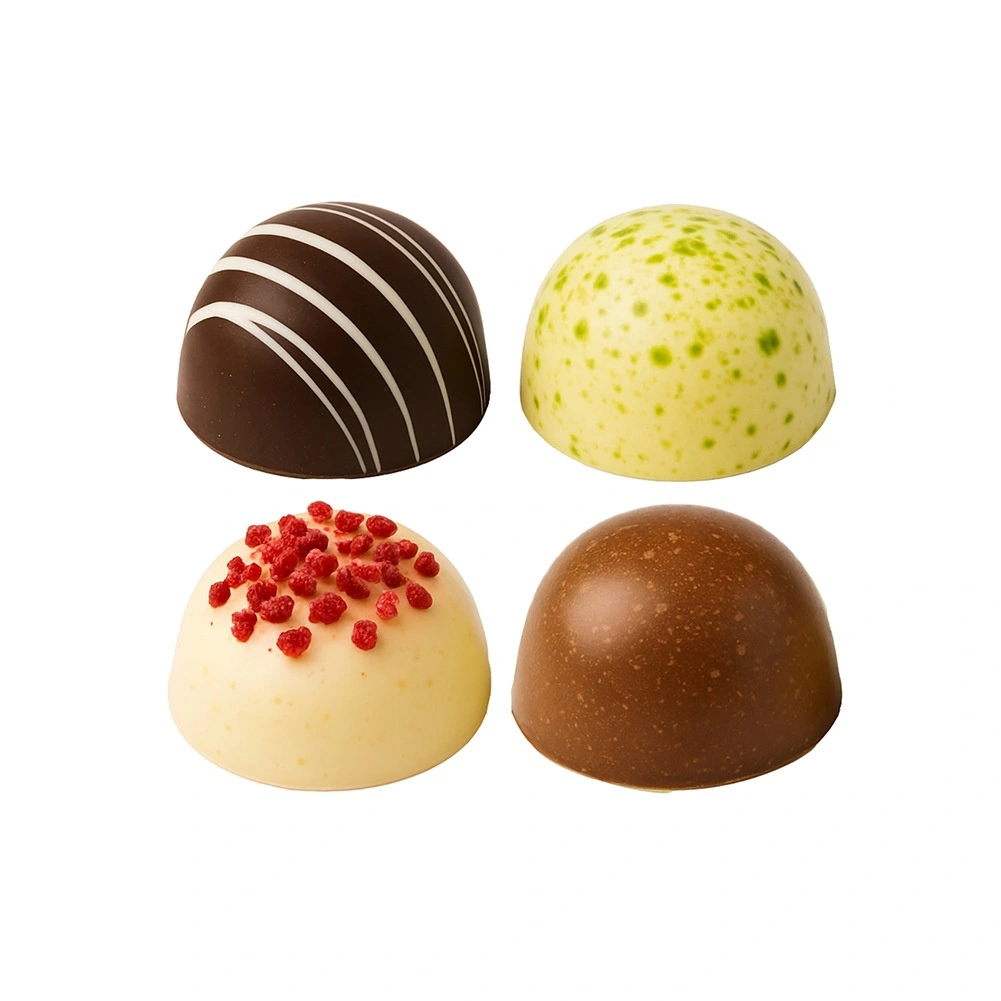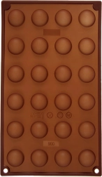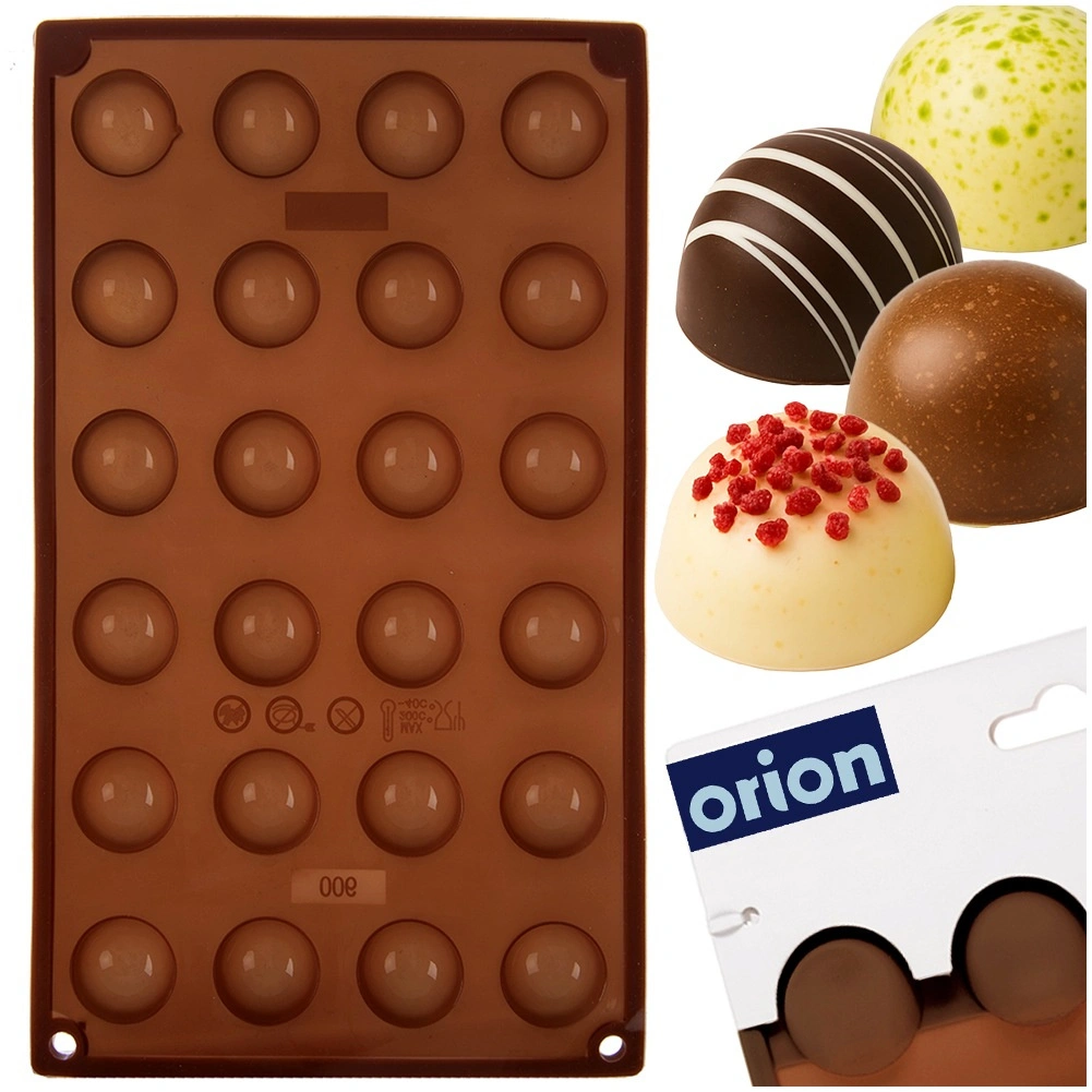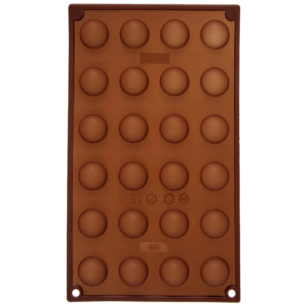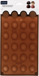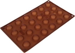 De vorm biedt 24 halfronde holtes met een diameter van ca. 2,8 cm – ideaal voor pralines, truffels en mini-desserts.