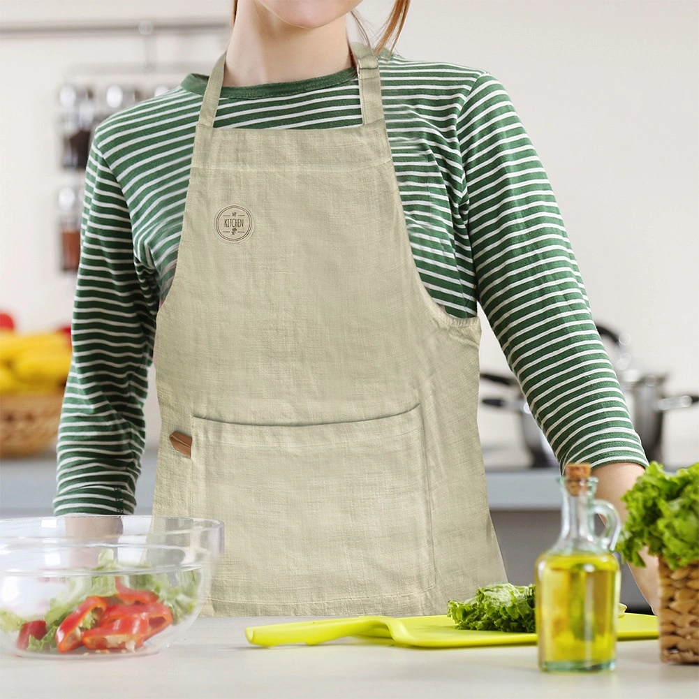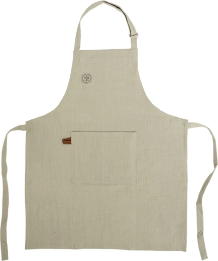 De verstelbare nekband met gesp en de lange strikkoorden in de taille zorgen ervoor dat het schort bij elk postuur goed zit. De grote voorzak houdt lepels, een doek, kruiden of een receptbriefje binnen handbereik – ideaal voor thuiskoks, grillfans en creatief werk in de werkplaats.