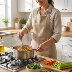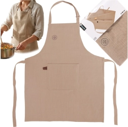 De universele snit en het aangename, natuurlijke materiaal zorgen voor comfort bij dagelijks koken, bakken en knutselen. Eenvoudig onderhoud door wassen tot 40 °C maakt langdurig gebruik en het behoud van netheid gemakkelijk.