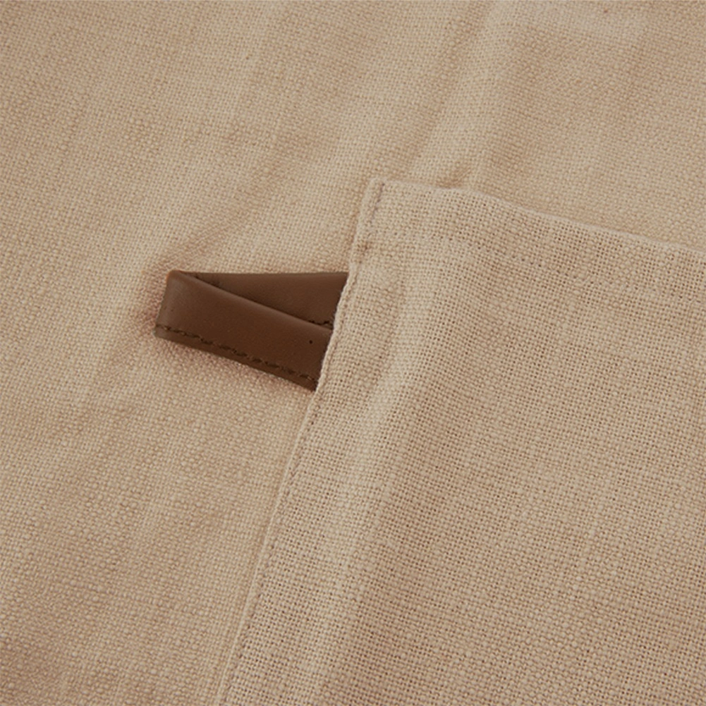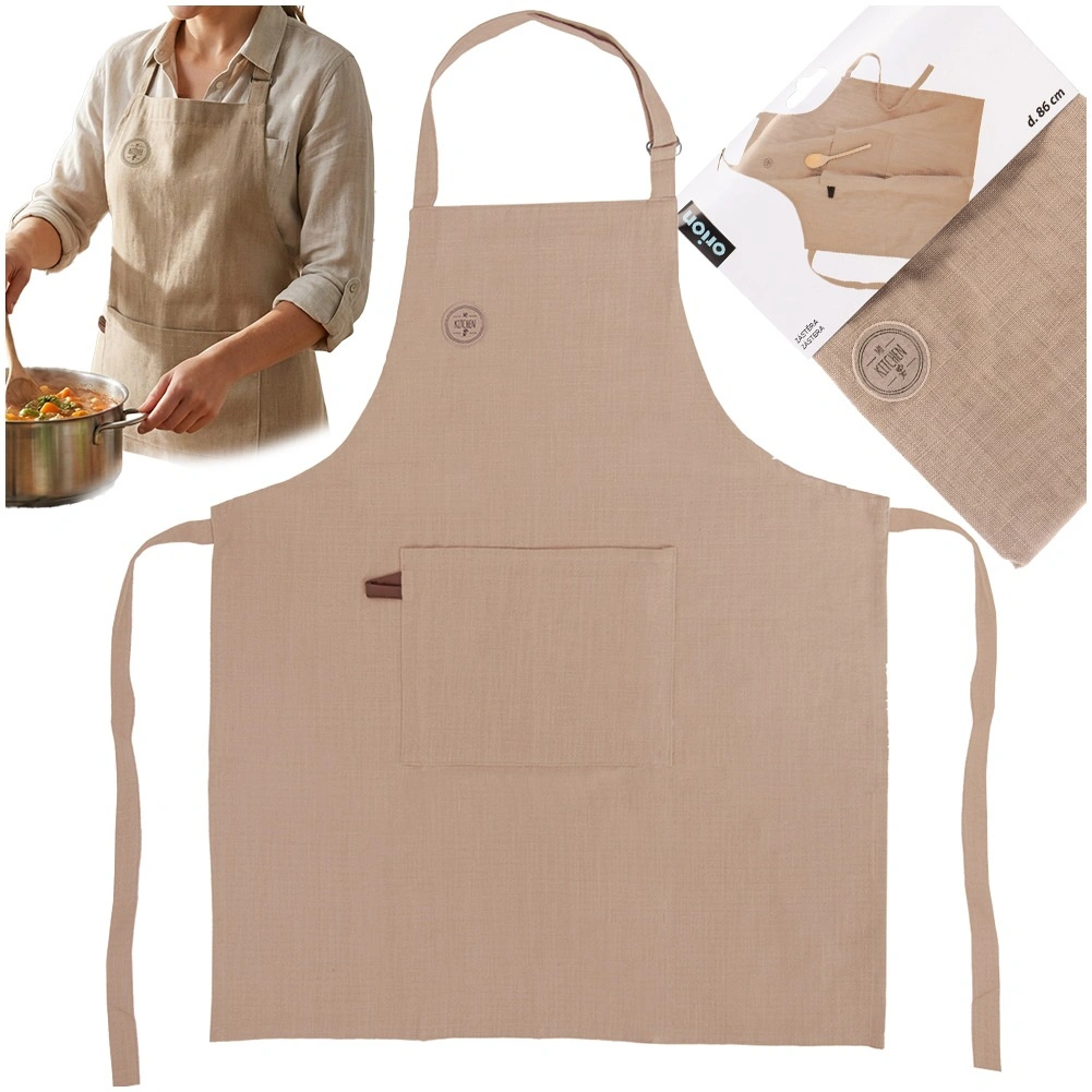 Dit katoenen schort is een betrouwbare hulp in de keuken en bij de tuinbarbecue. De stevige stof beschermt tegen spetters en vet, terwijl de verstelbare neksluiting met gesp en de lange taillebanden comfortabel en veilig vastzetten voor zowel vrouwen als mannen mogelijk maken. De functionele voorzak biedt plek voor veelgebruikt gereedschap, een doek of receptnotities.