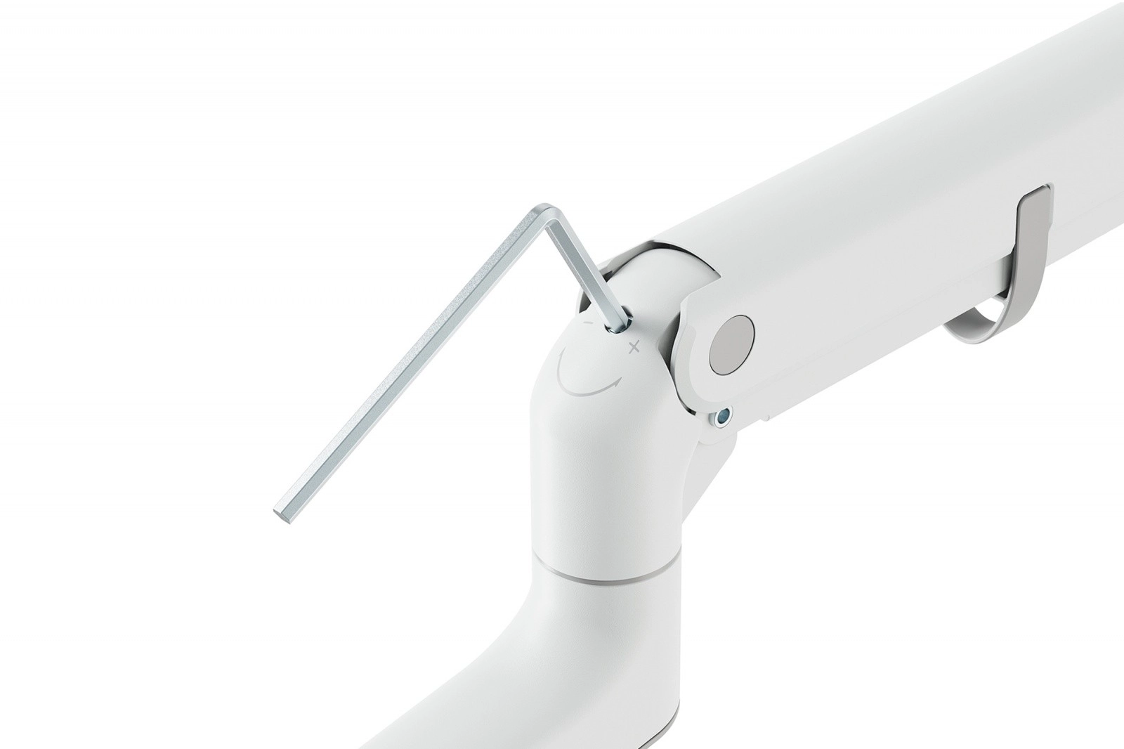De geïntegreerde gasveer met instelbare voorspanning balanceert het gewicht van de monitor en maakt vloeiende, precieze en moeiteloze positionering mogelijk.