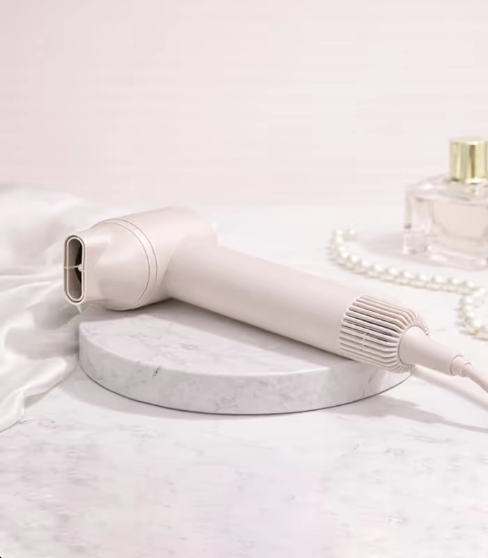 De bediening is intuïtief: regelbare snelheid en temperatuur beschermen het haar volgens haartype, koude lucht helpt de vorm te fixeren en een afstandssensor verhoogt comfort en veiligheid. Het elegante crème-design oogt premium en ligt fijn in de hand én in je badkamer.