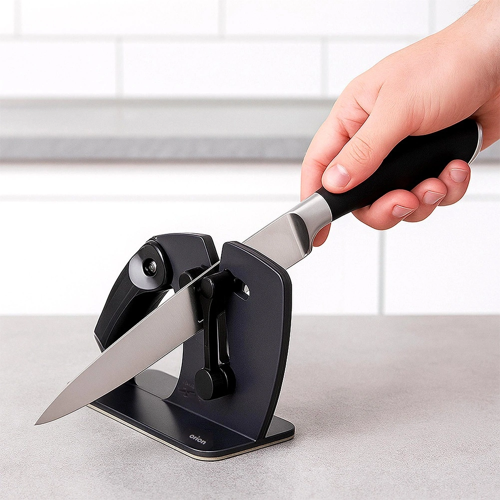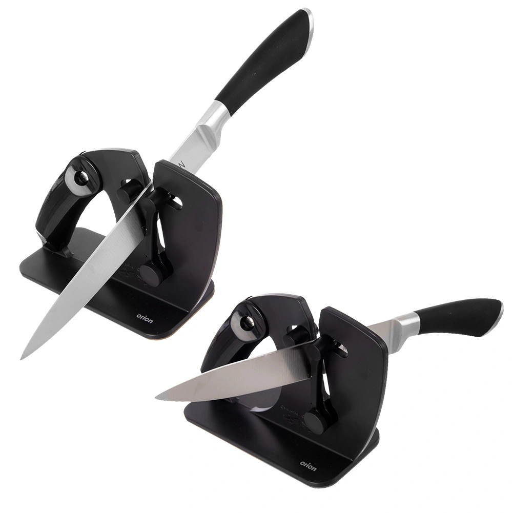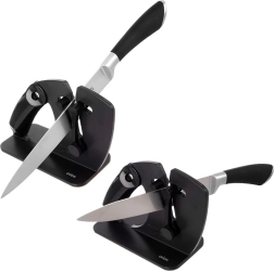 Zoek je een veelzijdige en betrouwbare slijper voor dagelijks mesonderhoud? Deze handmatige 2-in-1 slijper biedt automatische hoekinstelling via een veermechanisme, zodat er altijd onder de ideale hoek wordt geslepen. Geschikt voor stalen messen met een rechte snede en voor gekartelde messen (bijv. broodmessen). De compacte afmetingen 20 × 7,5 × 13 cm passen op het aanrecht en in de lade.
