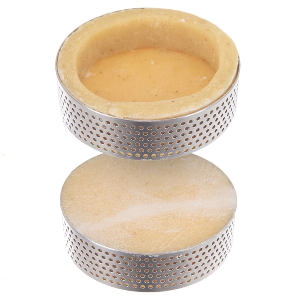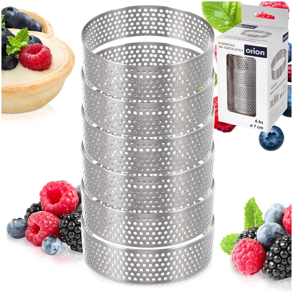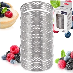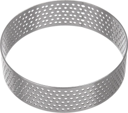 Praktische set van 6 geperforeerde taartringen met een diameter van 7 cm en een hoogte van 2 cm voor egale garing, krokante bodems en makkelijk lossen zonder invetten. Roestvrij staal zorgt voor duurzaamheid en vormvastheid, de perforatie bevordert de afvoer van stoom en perfecte garing van zoete en hartige tartelettes. Geschikt voor de vaatwasser.
