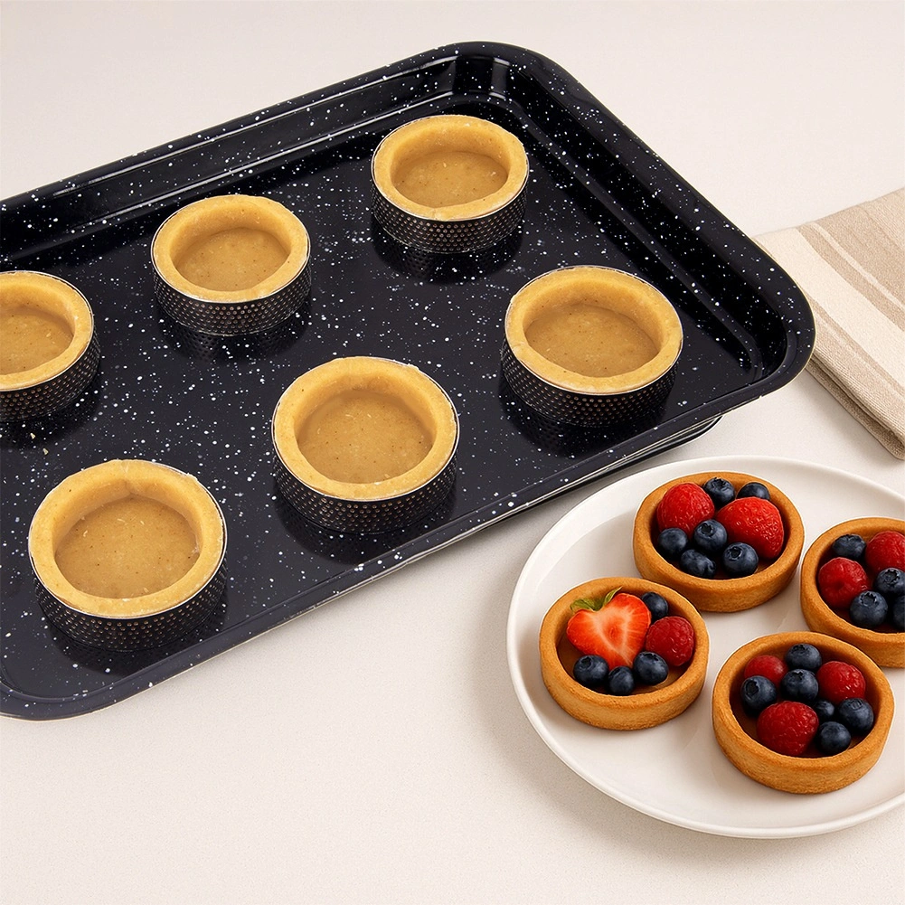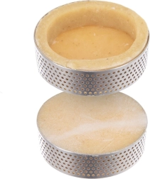 Ontdek hoe eenvoudig het is om perfect gevormde tartelettes te maken – zoet én hartig. De geperforeerde wanden voeren stoom effectief af, waardoor het deeg gelijkmatig gaart en heerlijk krokant blijft. Het gladde oppervlak maakt loshalen na het bakken gemakkelijk en de bodems worden direct op bakpapier of een siliconen mat gebakken.