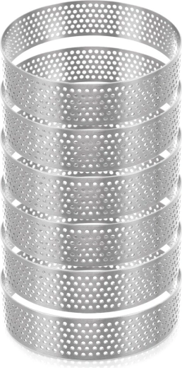 De ringen zijn gemaakt van duurzaam roestvrij staal dat hoge temperaturen goed verdraagt en een lange levensduur garandeert. Elke ring heeft een diameter van 8 cm en een hoogte van 2 cm – ideaal voor elegante mini-desserts, tartelettes met crème, fruit of hartige taartjes.