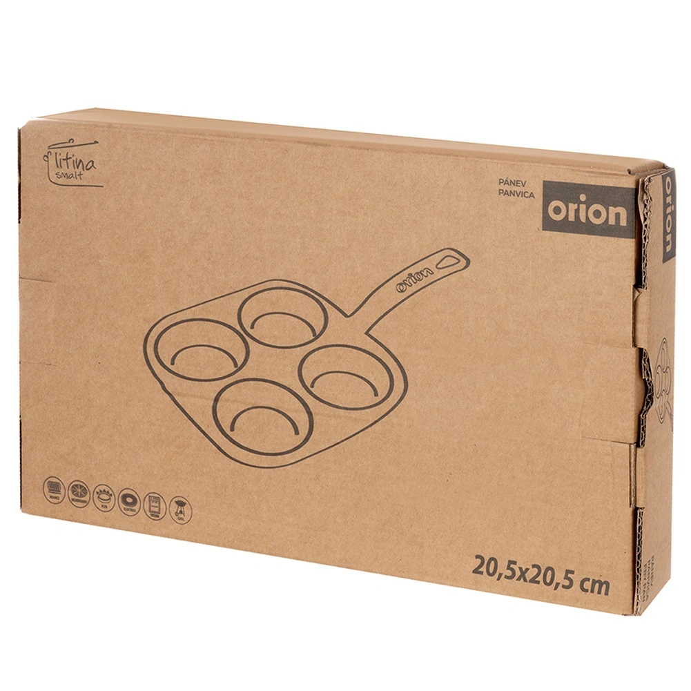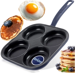Praktische vierkante gietijzeren pan met 4 ronde vormen (Ø 9 cm) voor perfect gevormde eieren of pannenkoekjes. Het geëmailleerde oppervlak maakt bakken en reinigen eenvoudig, terwijl gietijzer de warmte gelijkmatig geleidt en lang vasthoudt. Geschikt voor gas, elektrisch, keramisch, inductie en oven, bestand tegen hoge temperaturen en vaatwasmachinebestendig.