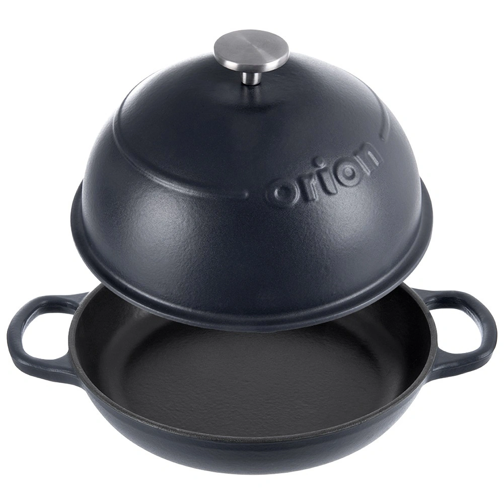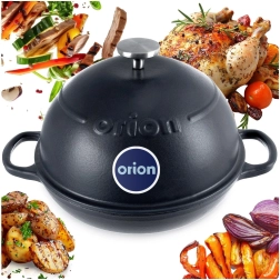 Universele geëmailleerde gietijzeren vorm met deksel voor het bakken van brood, vlees, groenten en zoete desserts. Leidt warmte perfect, houdt de temperatuur lang vast en dankzij het zware deksel is zowel bakken als stoven mogelijk met een sappig resultaat. Geschikt voor alle soorten kookplaten inclusief inductie en voor de oven tot 250 °C. Beproefde kwaliteit van het merk ORION.