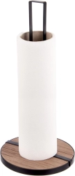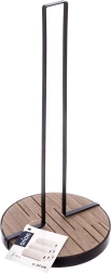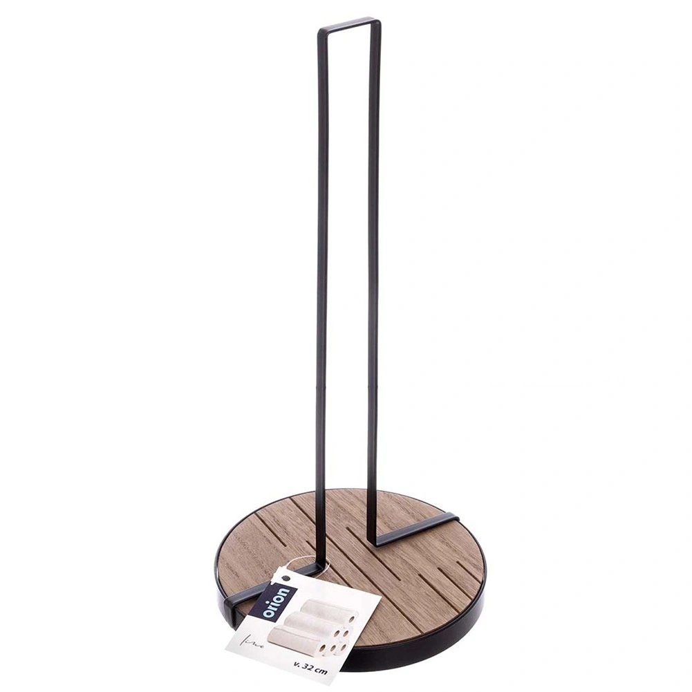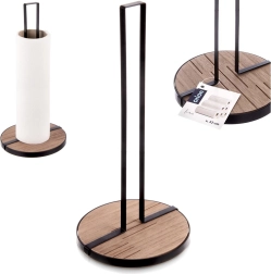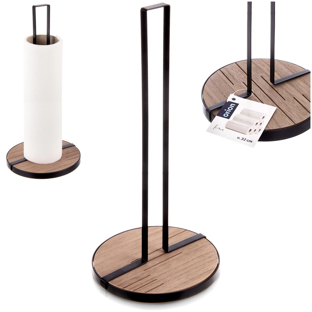De keukenrolhouder LINE met afmetingen 15,5 × 15,5 × 32,5 cm is een praktische hulp voor dagelijks koken en schoonmaken. De robuuste metalen constructie in zwarte kleur en de ronde houten MDF-basis zorgen voor uitstekende stabiliteit en een lange levensduur.
