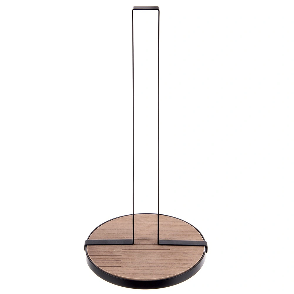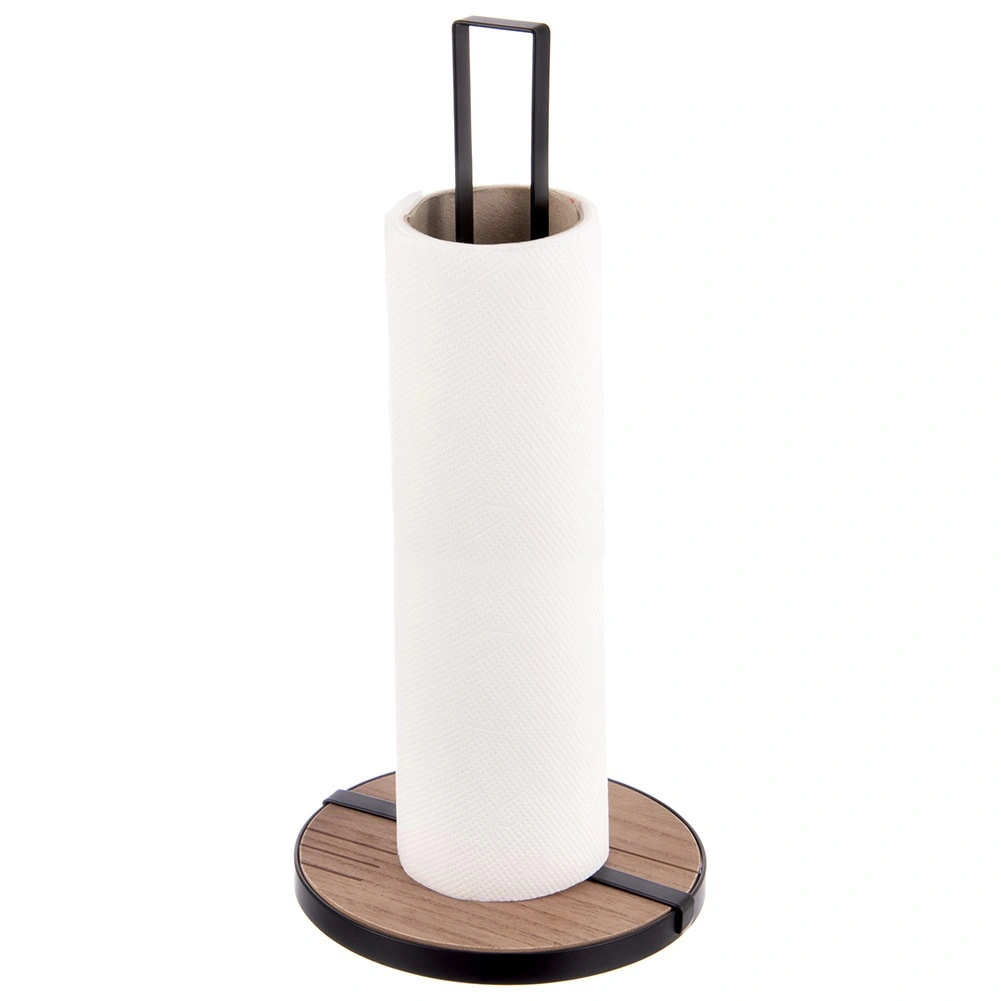 De ronde MDF-basis in combinatie met zwart metaal houdt de houder stevig op zijn plaats en zorgt voor soepel afscheuren zonder wiebelen.