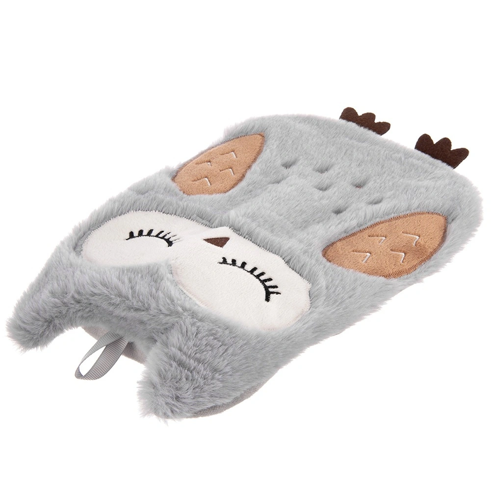 De zachte grijze pluchen hoes met uil biedt troost en aangename warmte binnen enkele minuten. Ideaal voor relaxen en een rustige slaap.