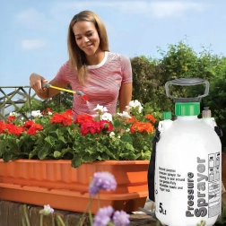 Deze druksproeier met 5 l inhoud vereenvoudigt de verzorging van planten, het aanbrengen van meststoffen en gewasbeschermingsmiddelen, evenals zacht reinigen rondom het huis. De transparante tank met maatstrepen maakt niveauregeling mogelijk, terwijl de verstelbare sproeikop alles biedt van fijne nevel tot een geconcentreerde straal.