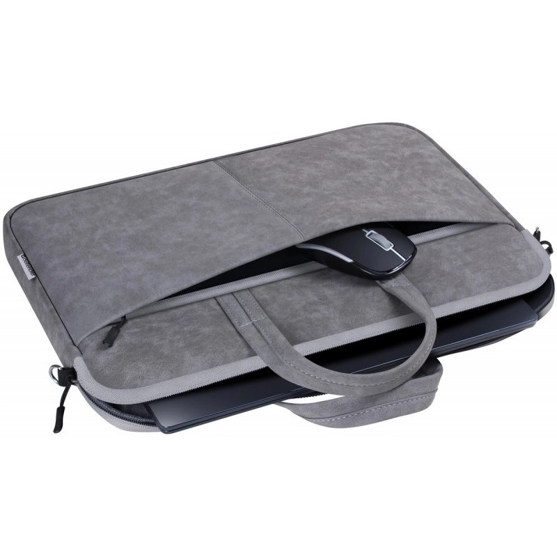 Deze elegante grijze laptoptas voor 15,6″ combineert een professionele uitstraling met functionele bescherming. Het duurzame oppervlak van eco-leer (synthetische nubuck) en de zachte binnenvoering beschermen je laptop betrouwbaar tijdens het dagelijkse woon-werkverkeer, naar school en op reis.