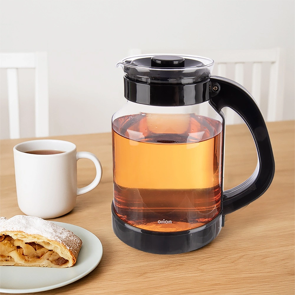 De glazen kan ORION met een inhoud van 2,25 l is ideaal voor het bereiden van warme dranken zoals thee, koffie of kruidenaftreksels, en voor het serveren van koude dranken, sappen en water. Het transparante lichaam maakt het eenvoudig om de hoeveelheid en sterkte van de drank te controleren, terwijl de deksel de inhoud tegen stof beschermt en helpt de temperatuur te behouden.