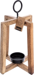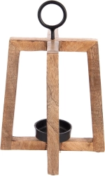 Stijlvolle houten lantaarn van mangohout met open constructie die voor een prettige, sfeervolle verlichting zorgt en jouw interieur of terras een natuurlijke charme geeft. De metalen houder maakt ophangen en comfortabel dragen mogelijk, het metalen schaaltje houdt veilig een kaars/tealight met een diameter tot 6 cm vast en vilten voetjes zorgen voor stabiliteit en bescherming van het oppervlak. Afmetingen 18 × 18 × 27,5 cm.