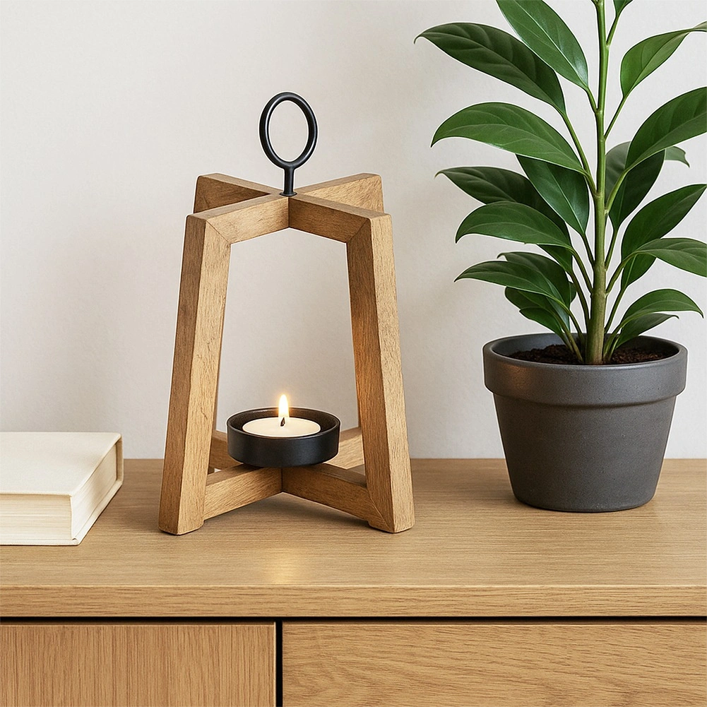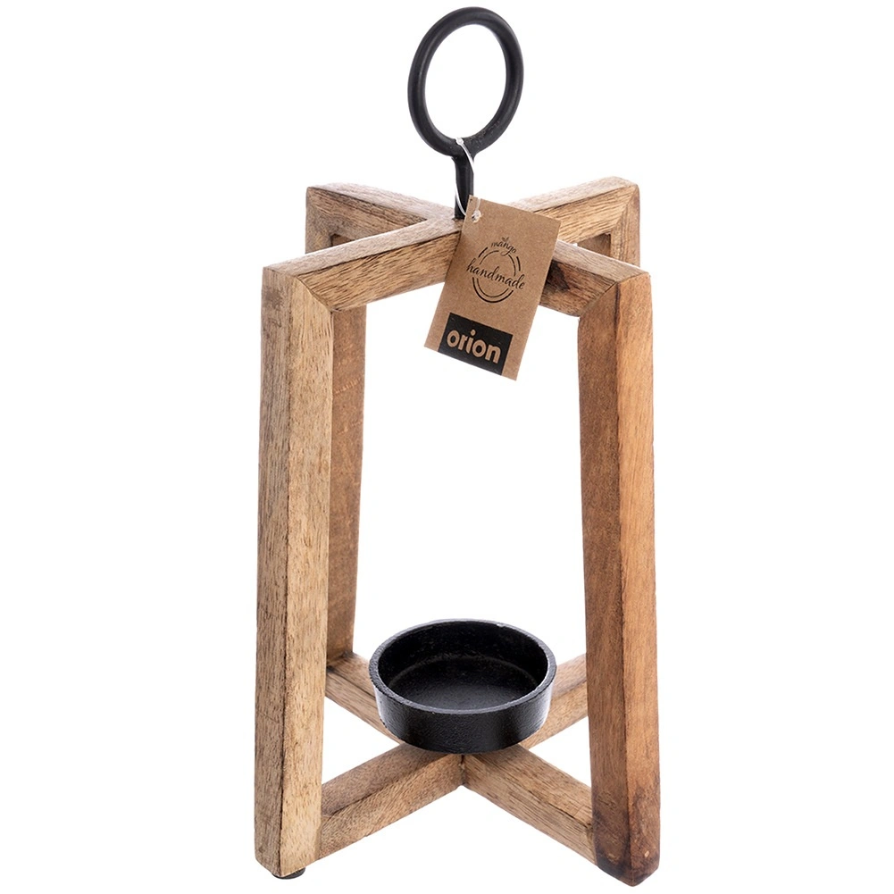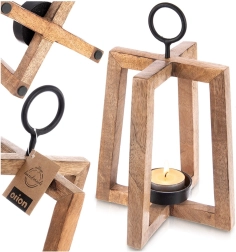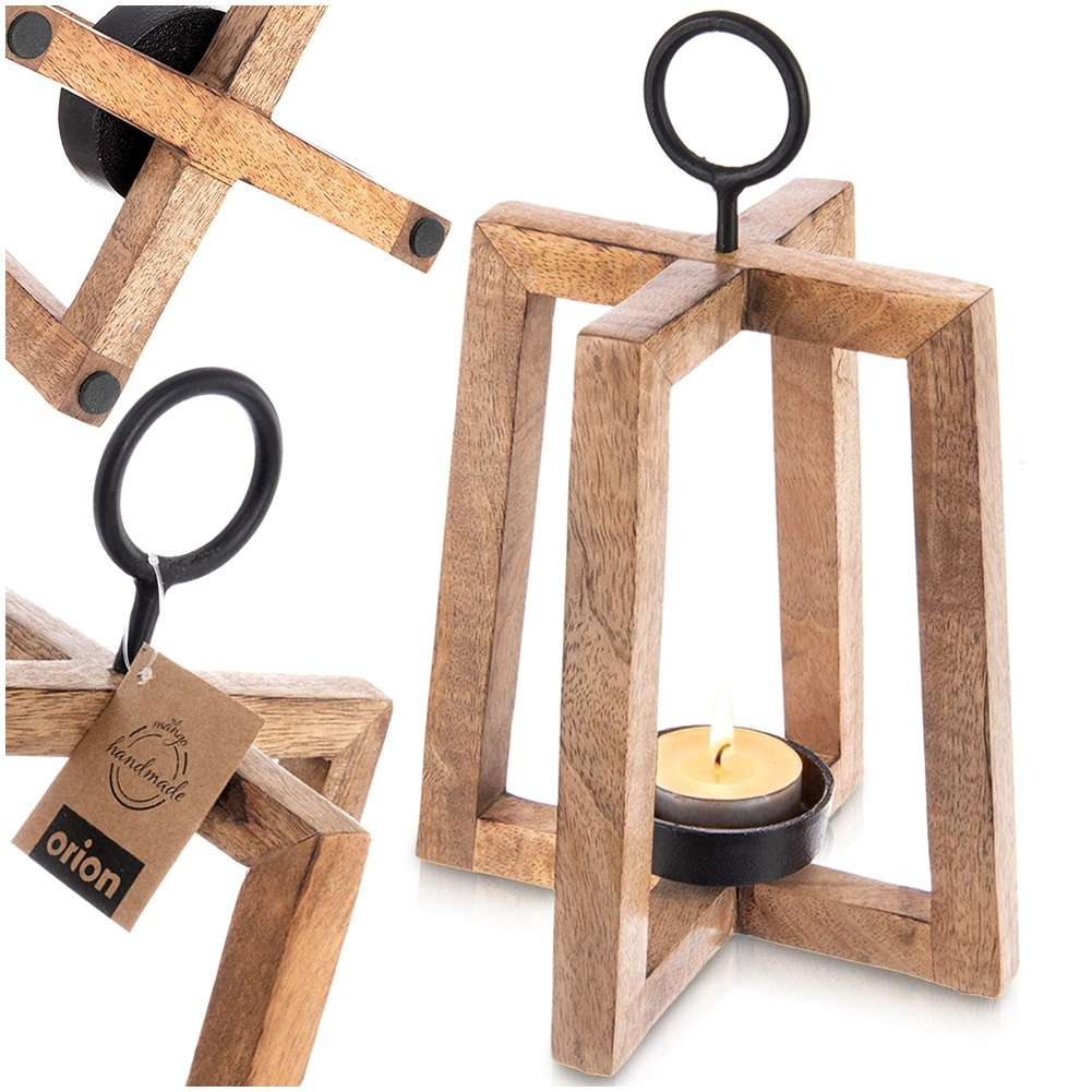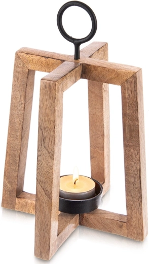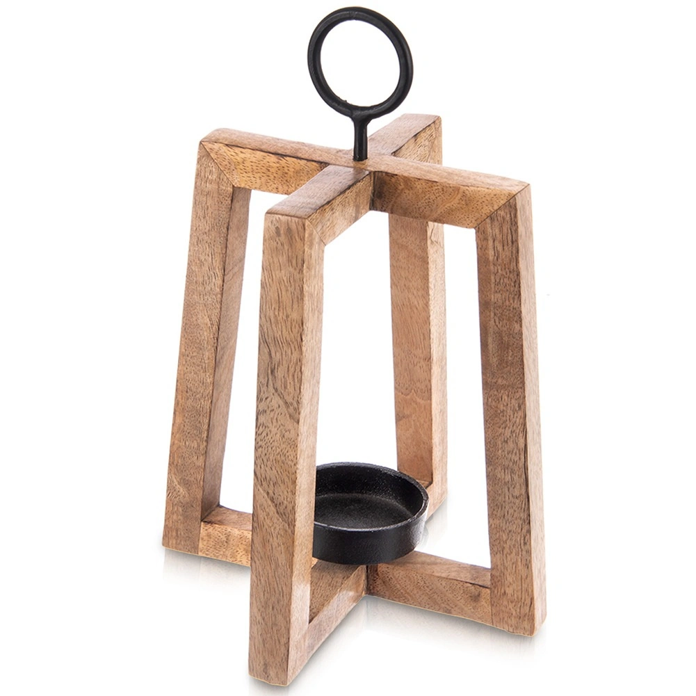 Deze designlantaarn met open frame valt op door de warme tint en nerf van mangohout. Past perfect in moderne, Scandinavische en rustieke interieurs en kan dankzij de metalen ring ook eenvoudig worden opgehangen bij de ingang, op het balkon of het terras.