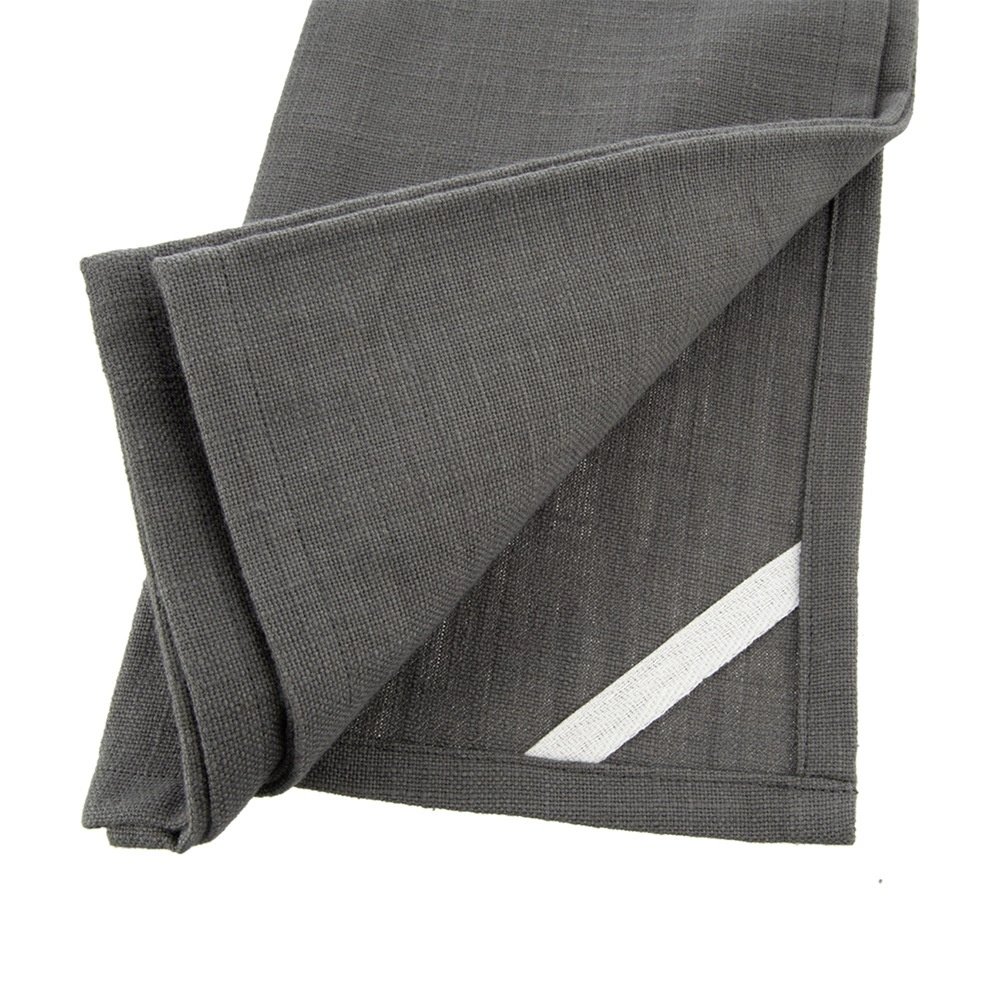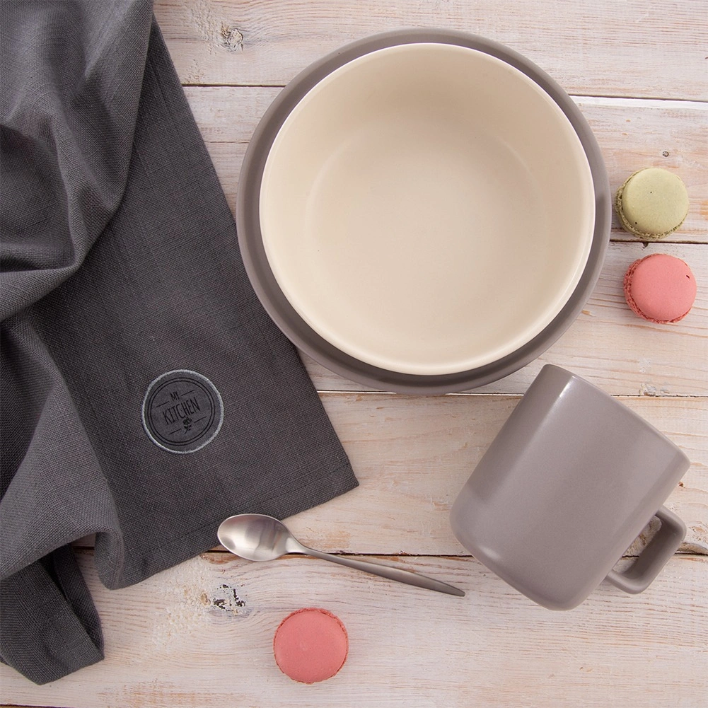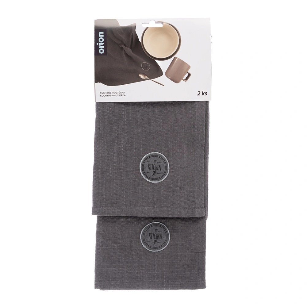 Ontdek betrouwbare keukenhanddoeken die het dagelijks gebruik in uw keuken moeiteloos aankunnen. Dankzij 100% katoen nemen ze snel vocht op, zijn ze onderhoudsvriendelijk en past de grijze tint in zowel moderne als klassieke interieurs. De handdoeken zijn voorzien van een subtiele applicatie “My Kitchen” en een praktische bies voor extra duurzaamheid.