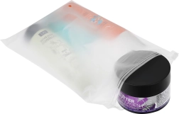 Halfmatte zakjes houden flesjes, tubes en kwasten bij elkaar, beschermen tegen vochtverlies en vervuiling en maken inpakken voor trips eenvoudiger.