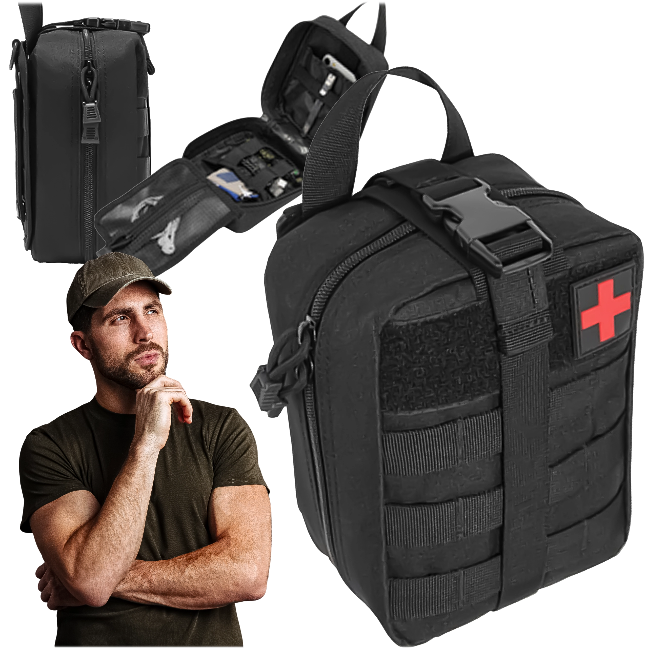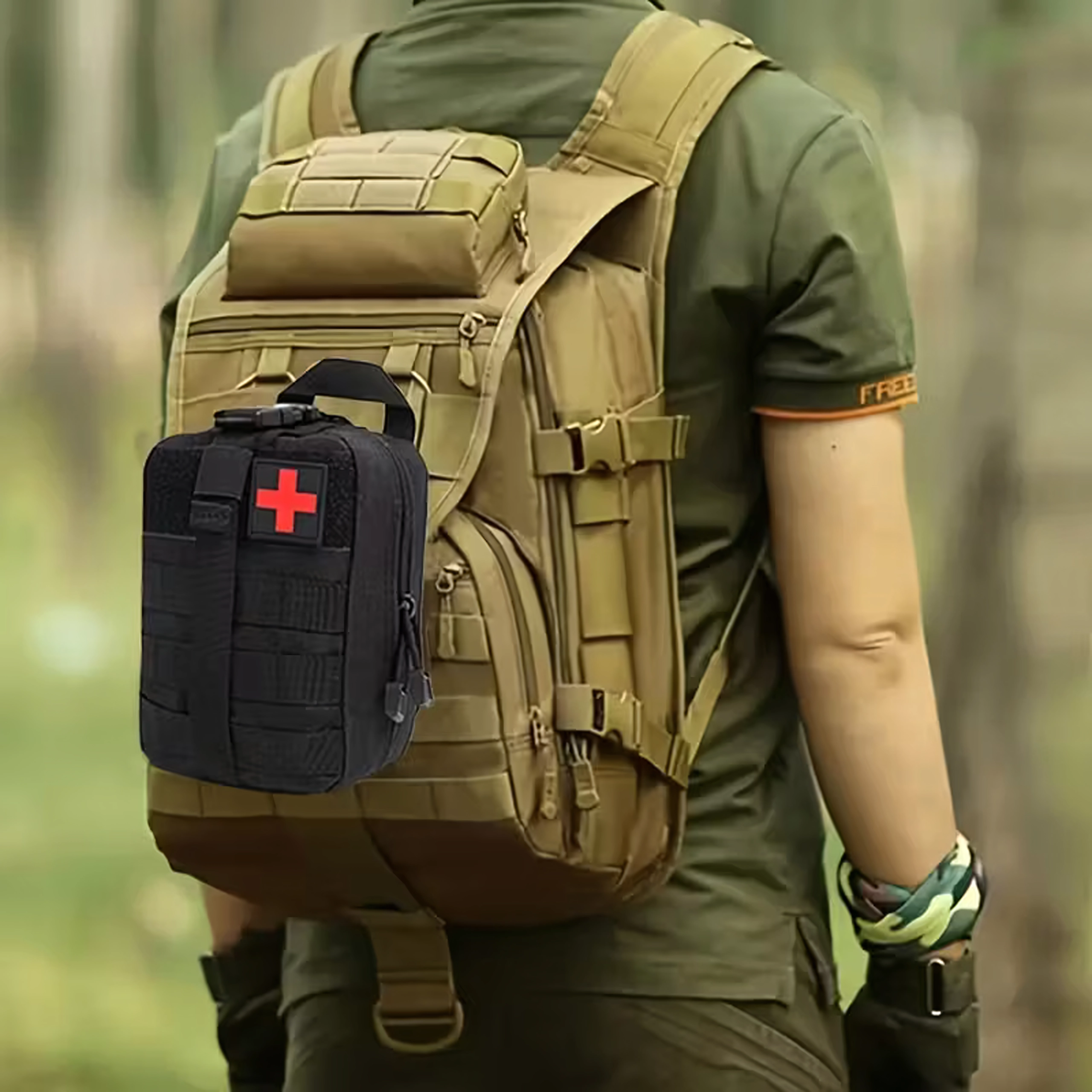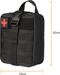 Compacte tactische EHBO-kit ontworpen voor wandelen, kamperen, survival en dagelijks gebruik. Dankzij de MOLLE-bevestiging bevestig je hem eenvoudig aan een rugzak, vest of in de auto. Duurzame uitvoering, snelle ritstoegang en overzichtelijke interne organisatie voor het direct vinden van de benodigde hulpmiddelen.