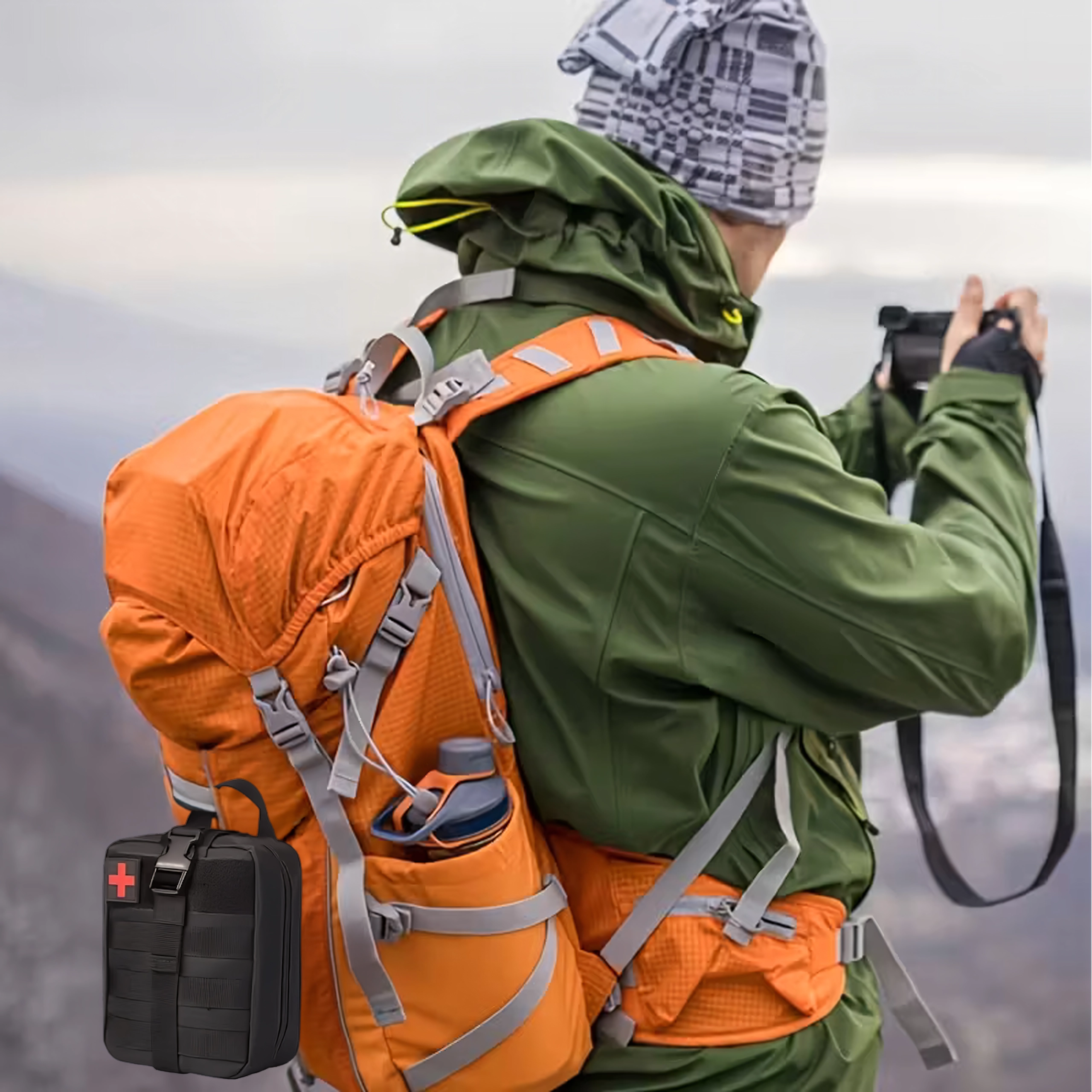 Dankzij de MOLLE-compatibiliteit bevestig je hem eenvoudig aan een rugzak, tactisch vest of in het interieur van een voertuig. Ideaal voor wandelaar, bergsport, airsoft, kamperen en reizen, waar je snelle beschikbaarheid en weerstand tegen outdooromstandigheden waardeert.