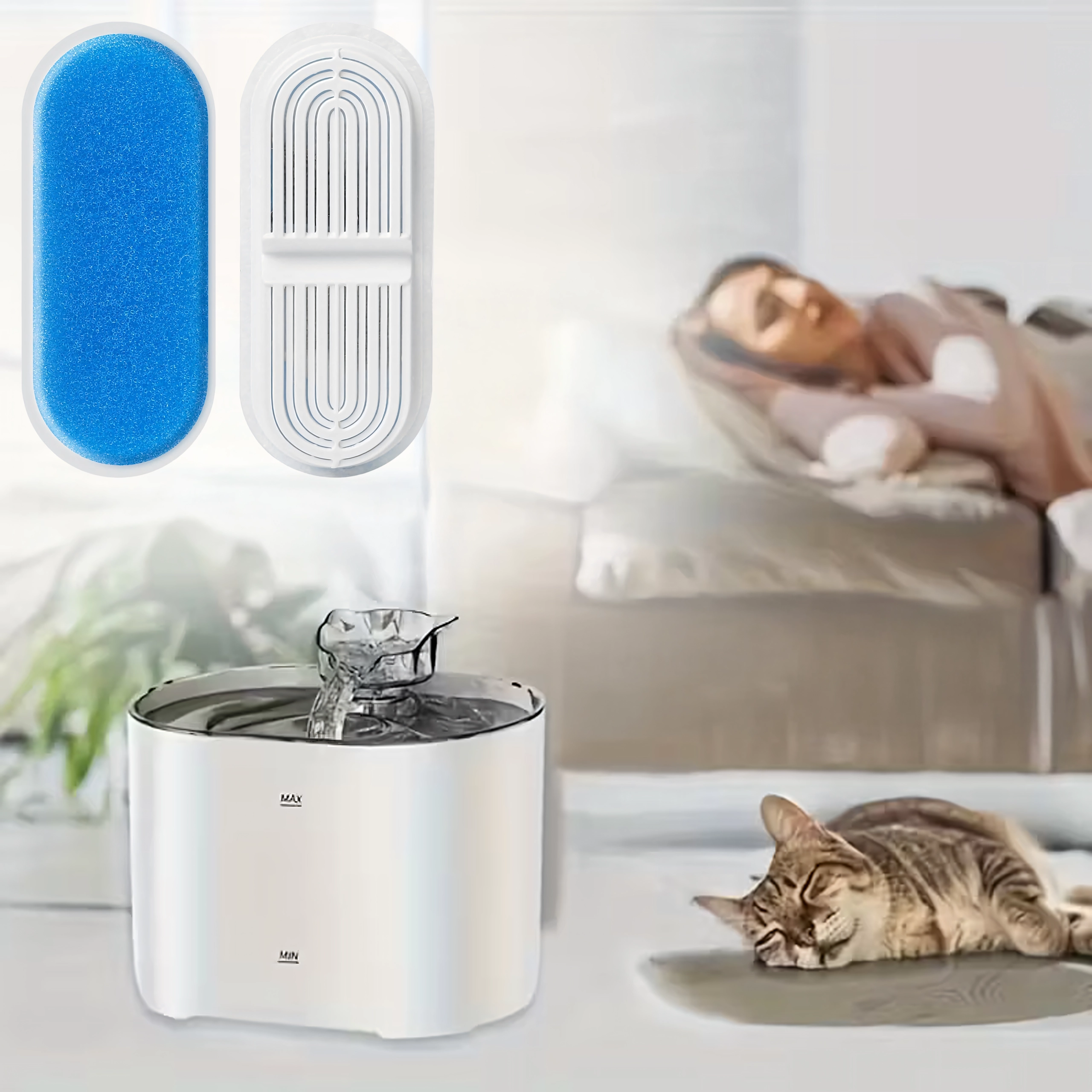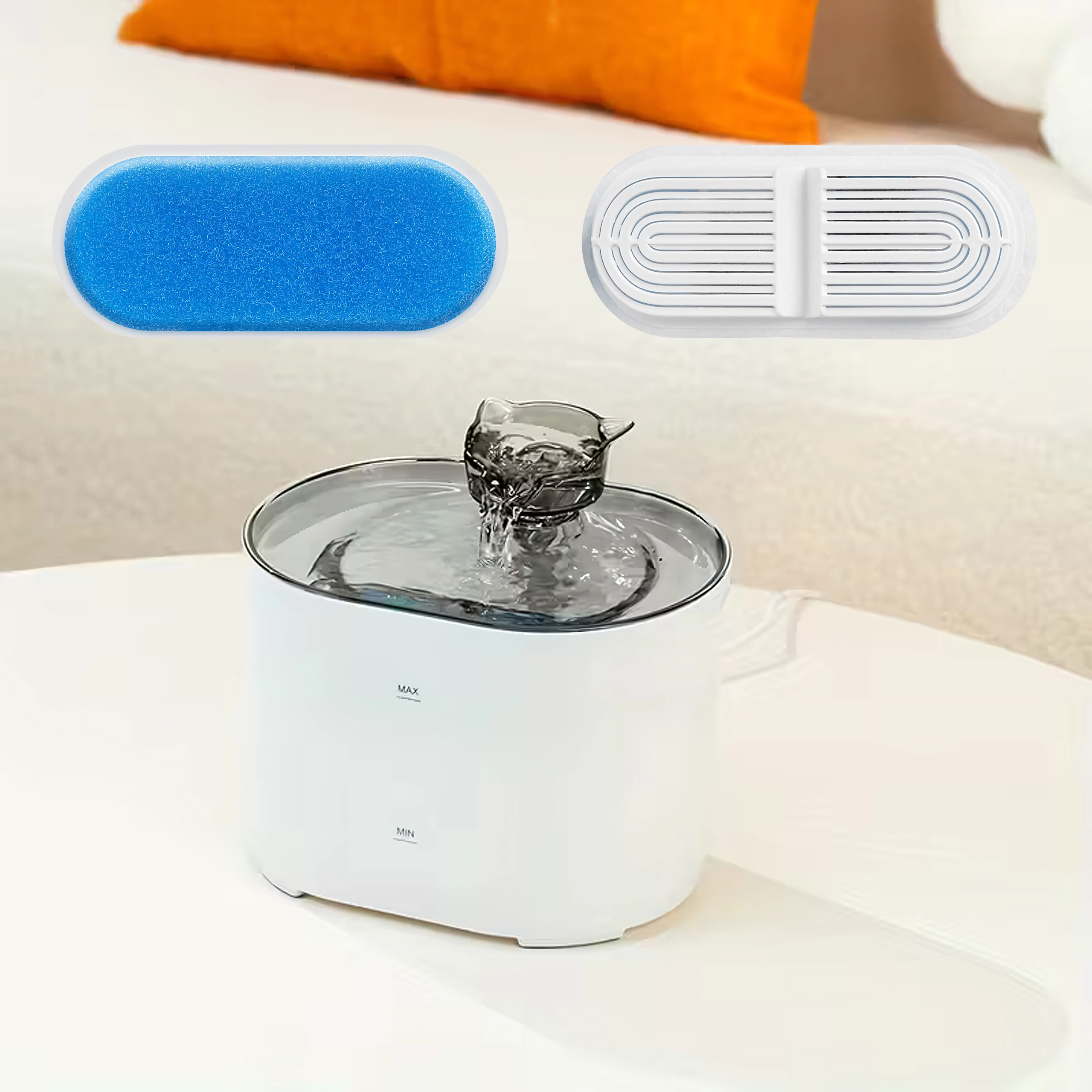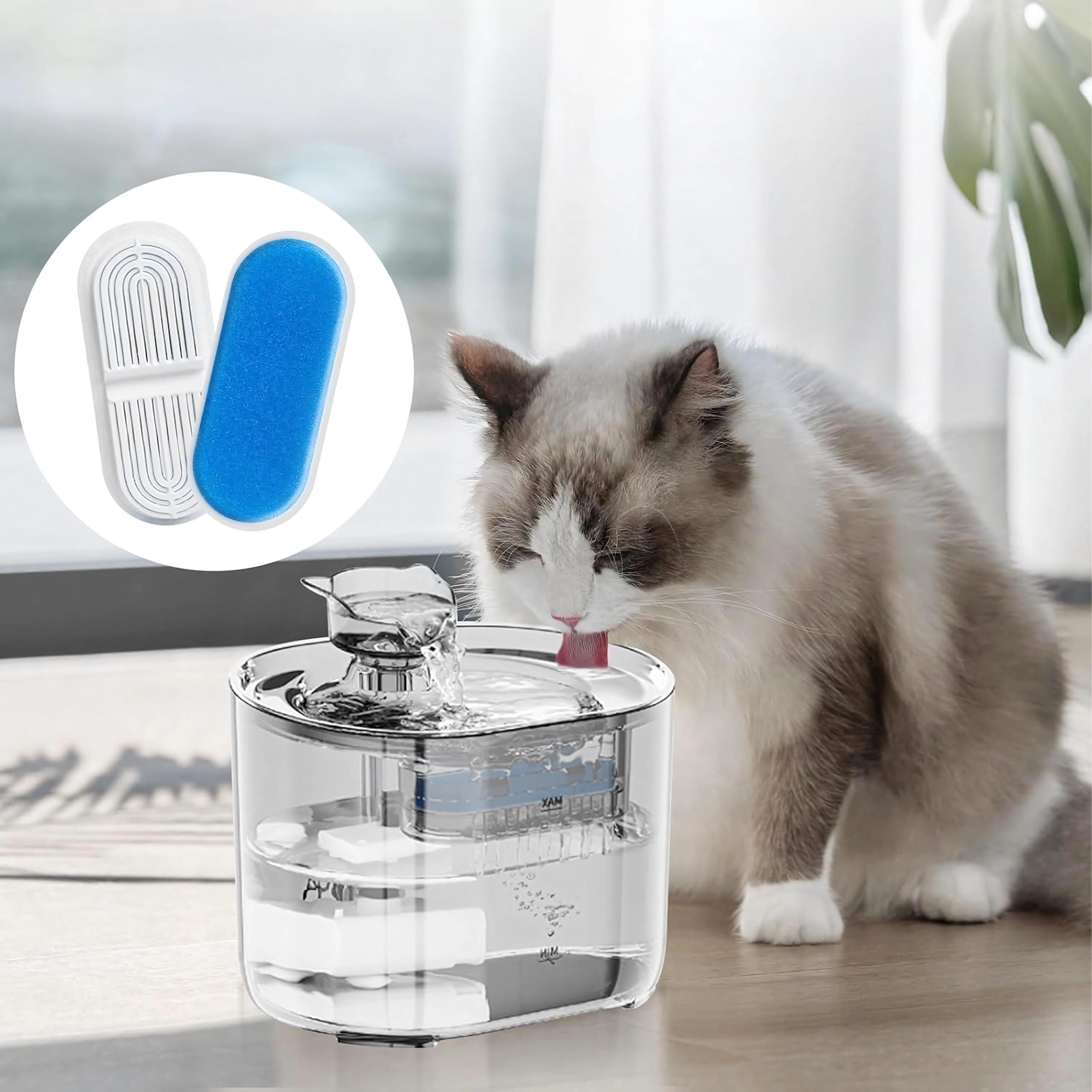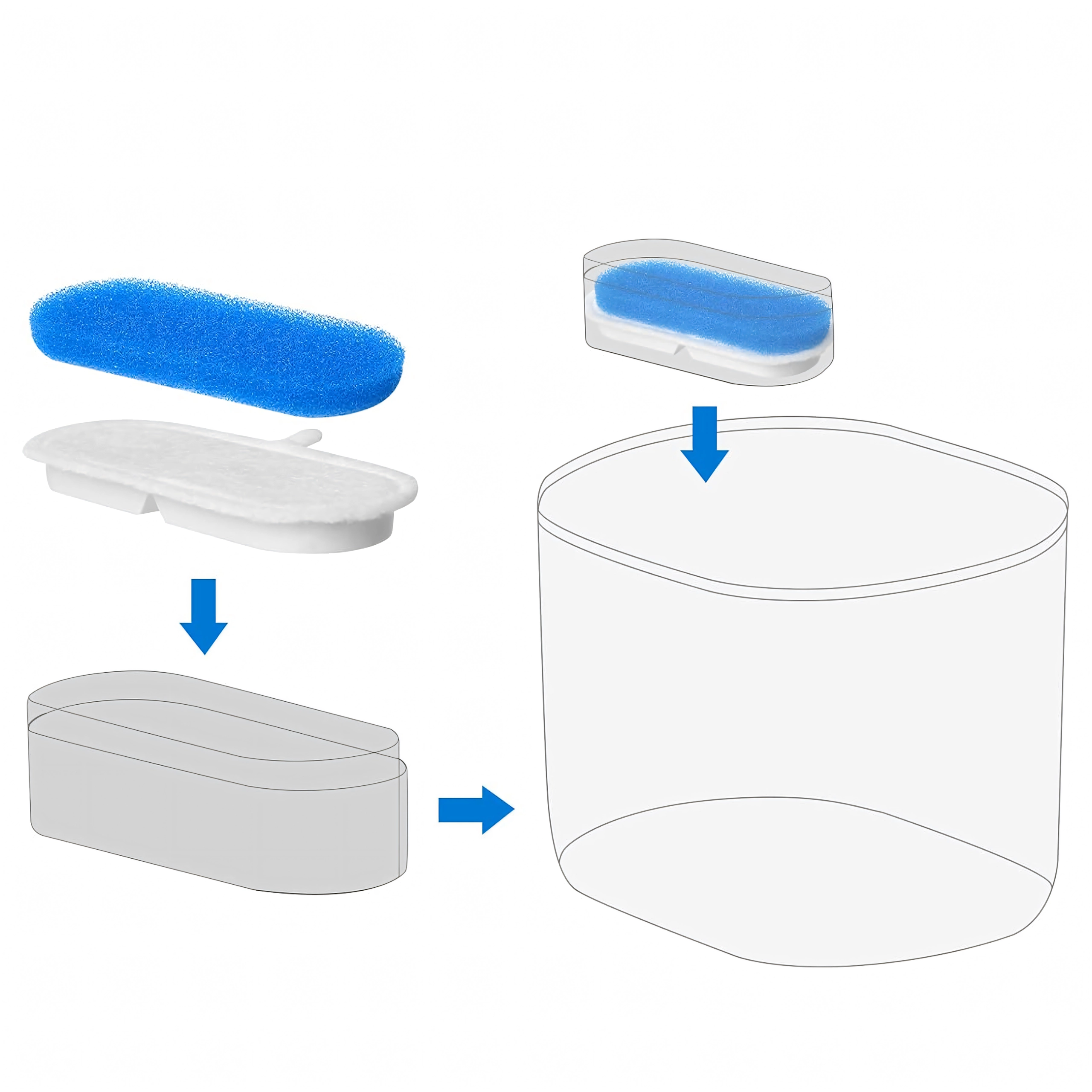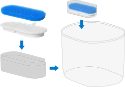 Plaats de filters eenvoudig in de daarvoor bestemde ruimte in de fontein. Snel vervangen zonder gereedschap bespaart tijd en moeite.