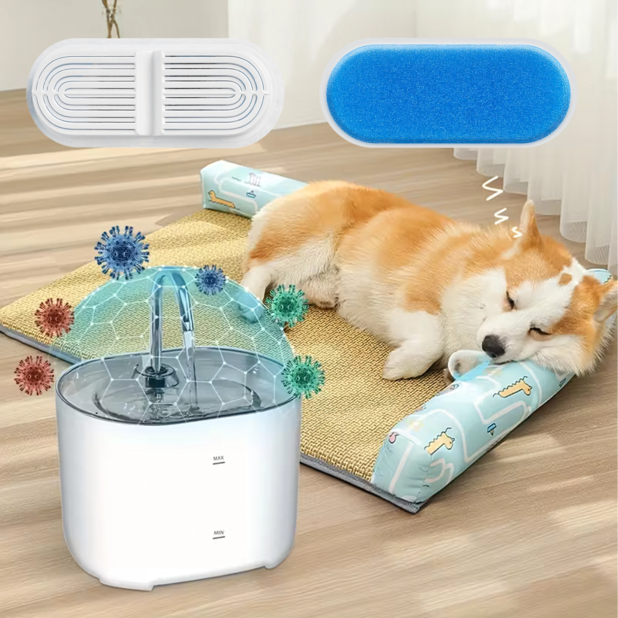 De combinatie van een schuim-prefilter en een fijne filtercartridge vangt effectief haren en kleine deeltjes op, zodat je huisdier schoner en smakelijker water drinkt.