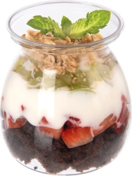 Serveer desserts en hapjes stijlvol en hygiënisch in elegante bekers met een inhoud van 160 ml. De transparante wanden accentueren de aantrekkelijke laagjes van yoghurt, fruit, knapperige granola en crèmes en tillen elke tafel direct naar een feestelijk niveau.