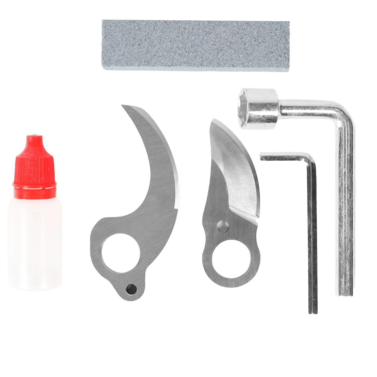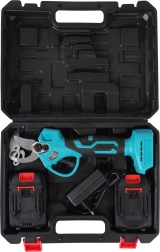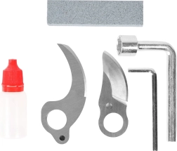 De complete accessoireset in de robuuste koffer omvat 2× 21 V accu (1500 mAh), een oplader, onderhoudsgereedschap en reservebladen, zodat je direct aan de slag kunt en de schaar in topconditie houdt.